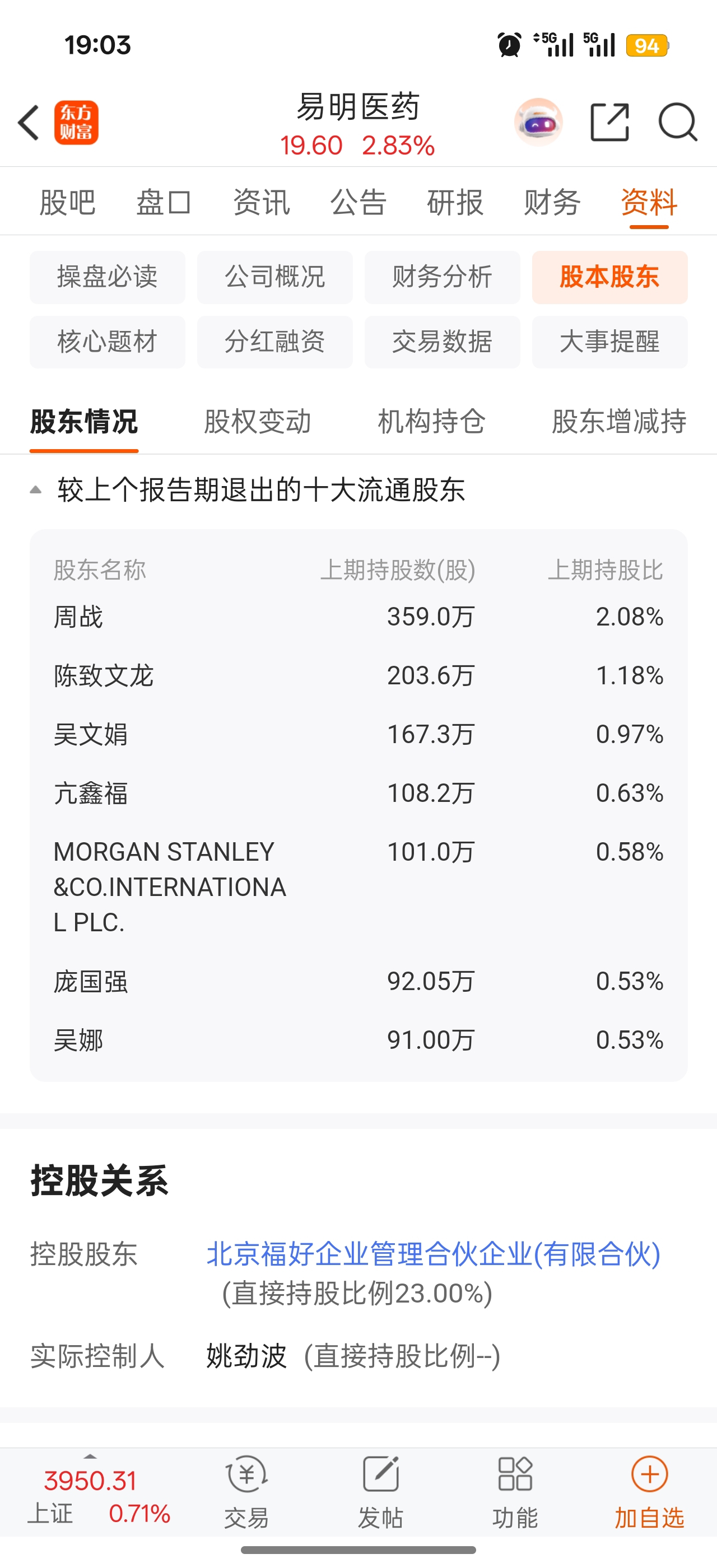 陈致文龙大佬眼光独到,之前在易明医药精准逃顶,短期翻了几倍了,而且只买了200万