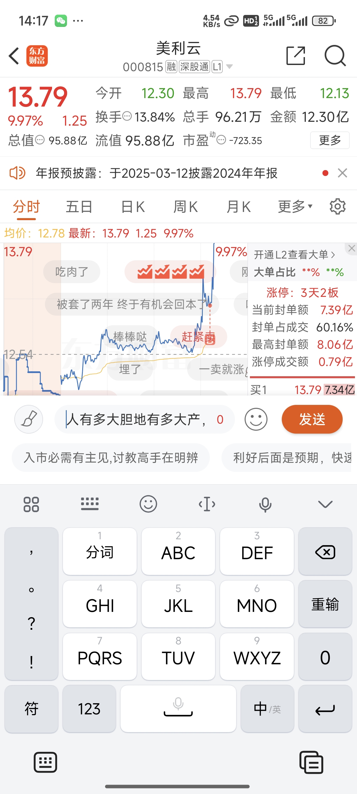 $美利云(SZ000815)$ $康盛股份(SZ002418)$ 清仓康盛,美利云买少了!人有多大胆地有多大产,清华北大不如胆子大,阿弥陀佛!