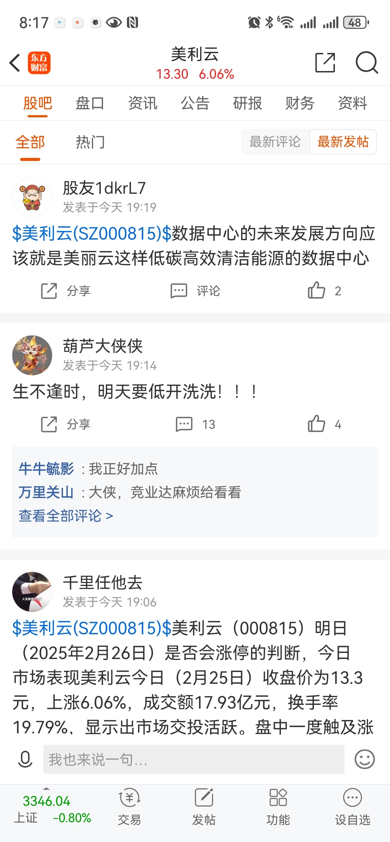 温馨提示: 1.根据《证券法》规定,禁止编造、传播虚假信息或者误导性信息,扰乱证券市场;2.用户在本社区发表的所有资料、言论等仅代表个人观点,与本网站立场无关,不对您构成任何投资建议。用户应基于自己的独立判断,自行决定证券投资并承担相应风险。《东方财富社区管理规定》