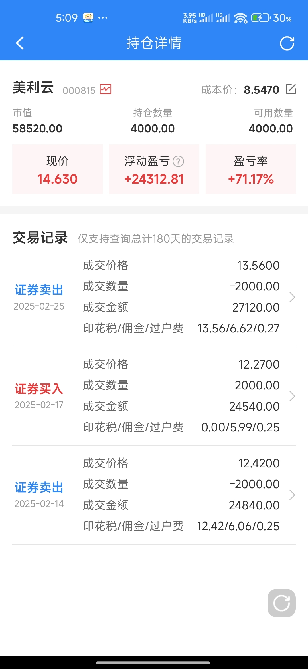 $美利云(SZ000815)$ 套了好几年了,当时十一元多买的后来补过仓9.8元,成本价10.2元。13.5走了二千股。还留4千股。央企小盘算力成新龙头会创历史新高。