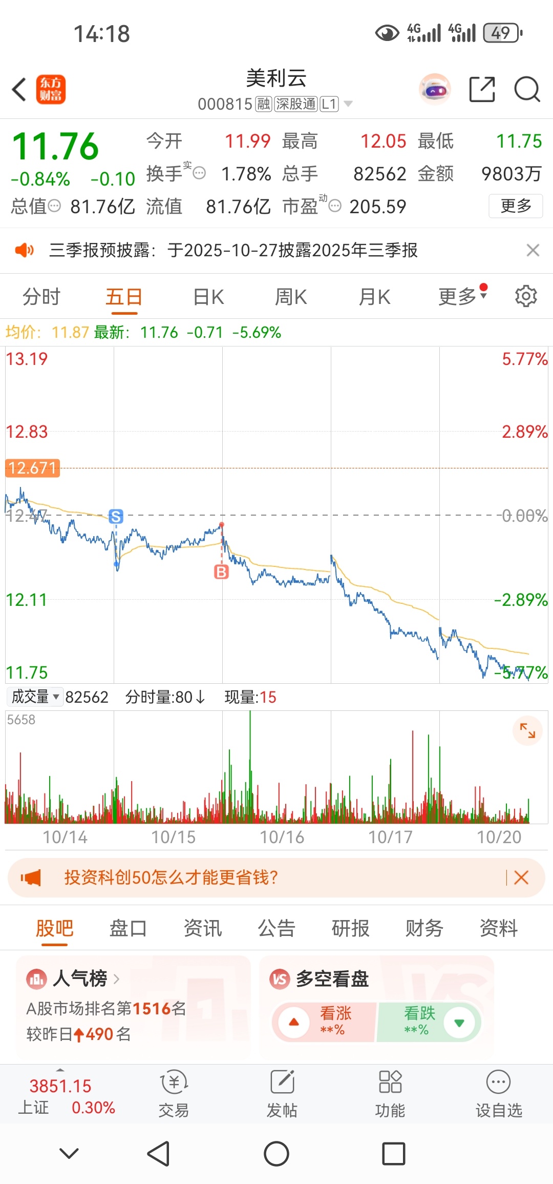 $美利云(SZ000815)$
