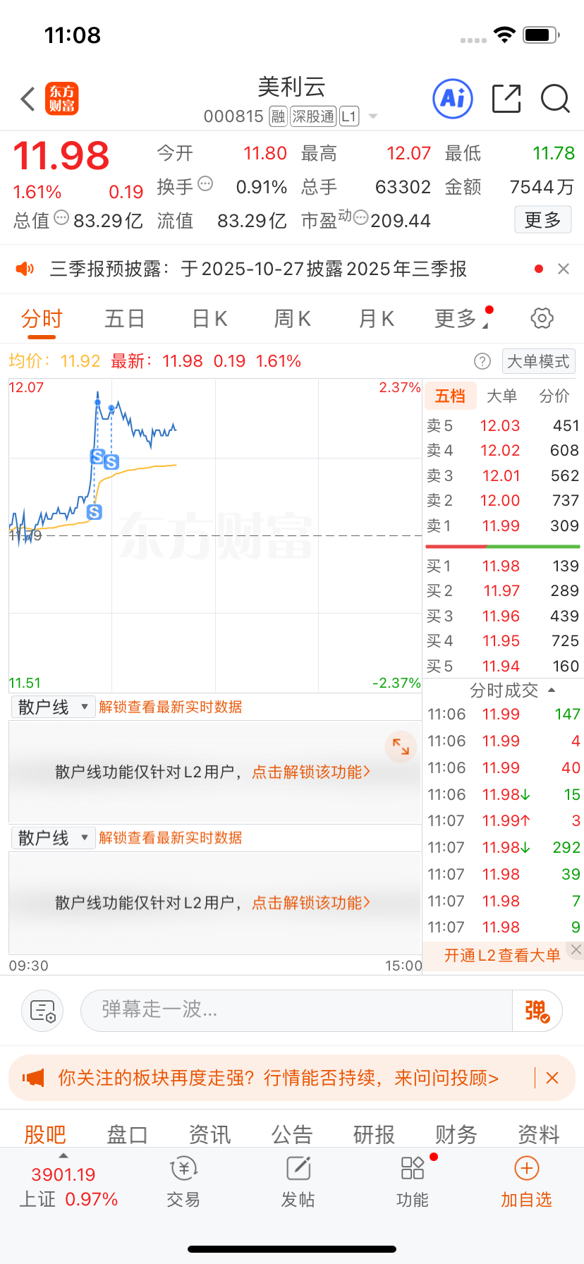 $美利云(SZ000815)$ 还有十万股12谁接?