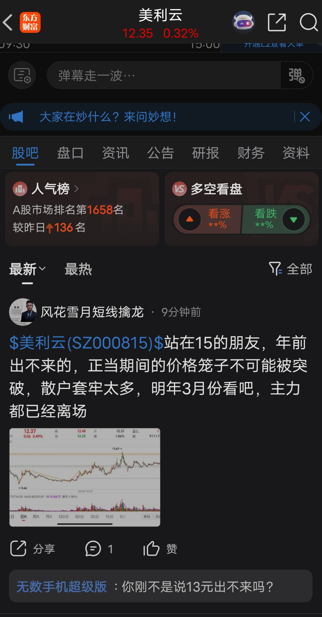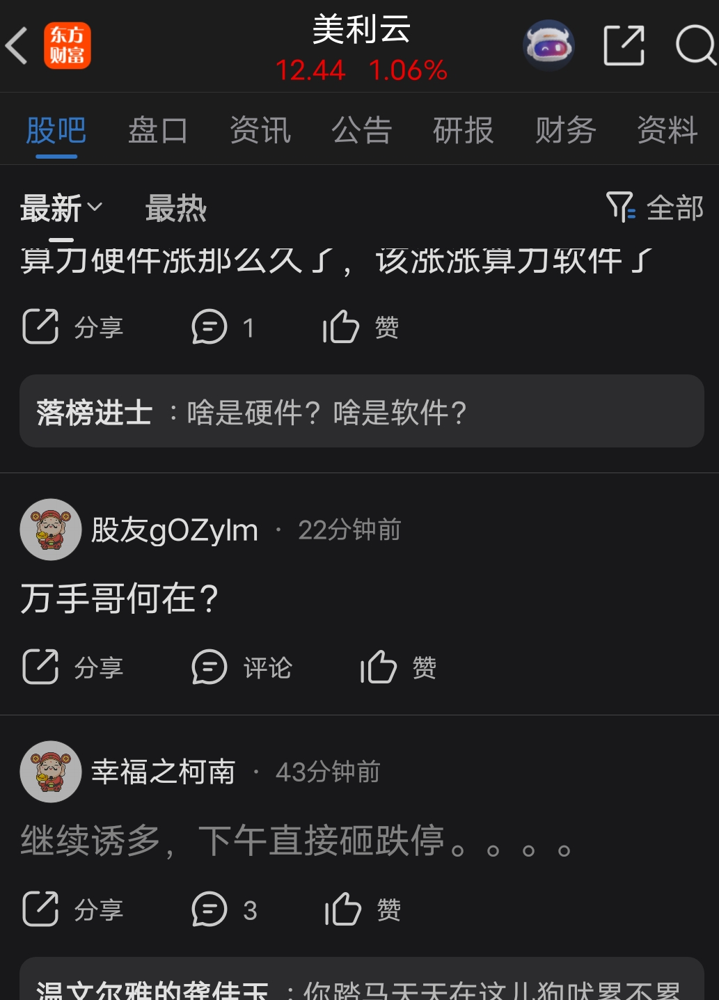 温馨提示: 1.根据《证券法》规定,禁止编造、传播虚假信息或者误导性信息,扰乱证券市场;2.用户在本社区发表的所有资料、言论等仅代表个人观点,与本网站立场无关,不对您构成任何投资建议。用户应基于自己的独立判断,自行决定证券投资并承担相应风险。《东方财富社区管理规定》
