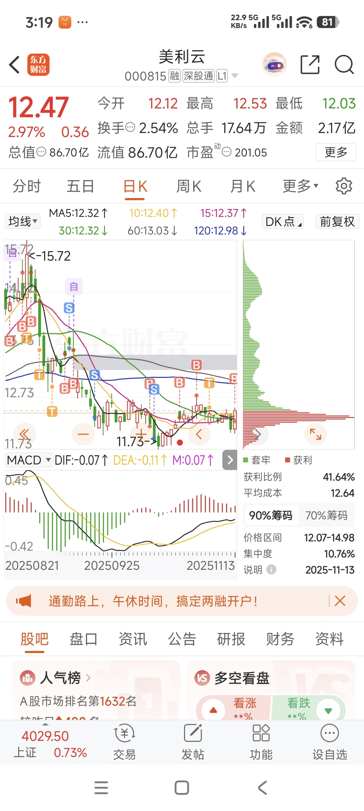 $美利云(SZ000815)$ 跌了这么久了,该上了