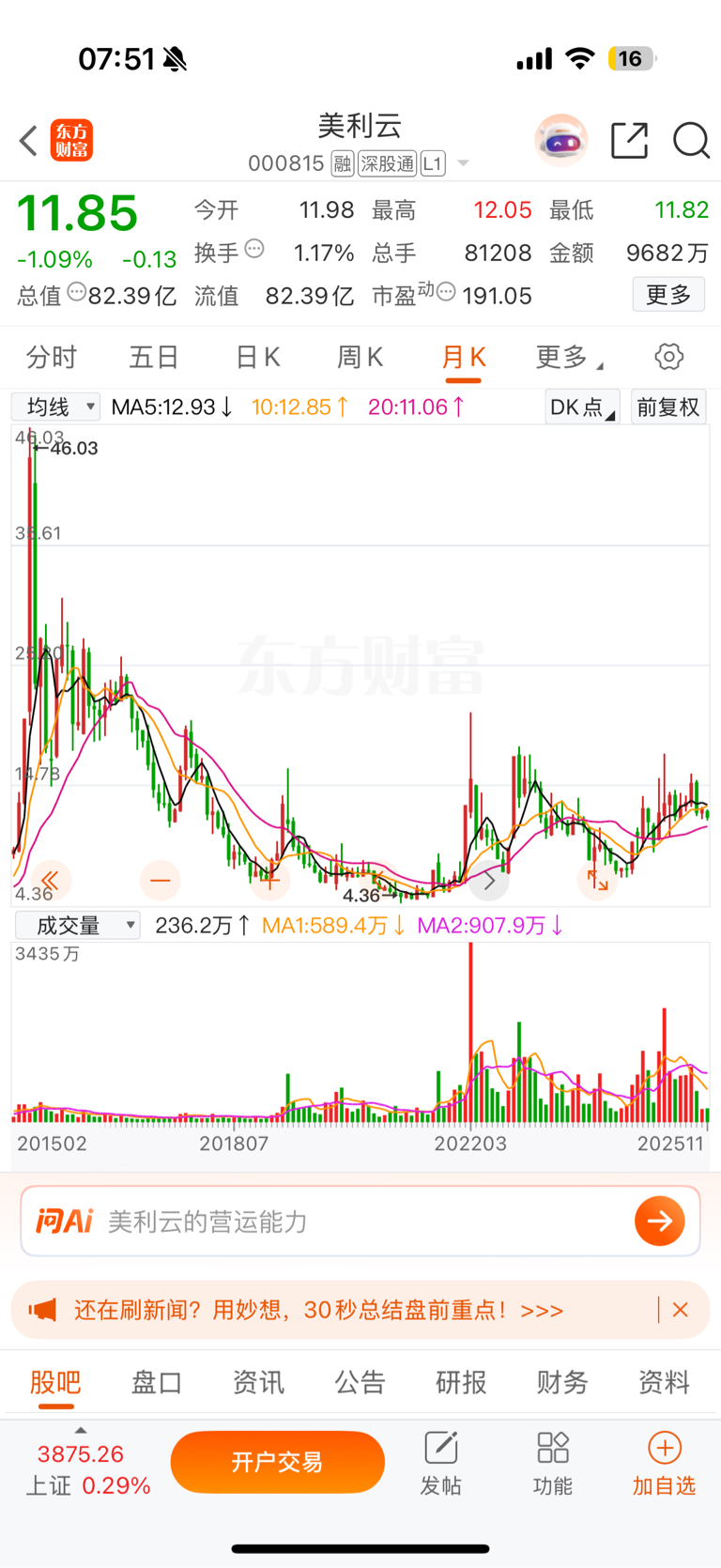 美利云发行价1.74,暴力拉升到47,公司属于租赁算力机柜皮包公司,造纸业已经停