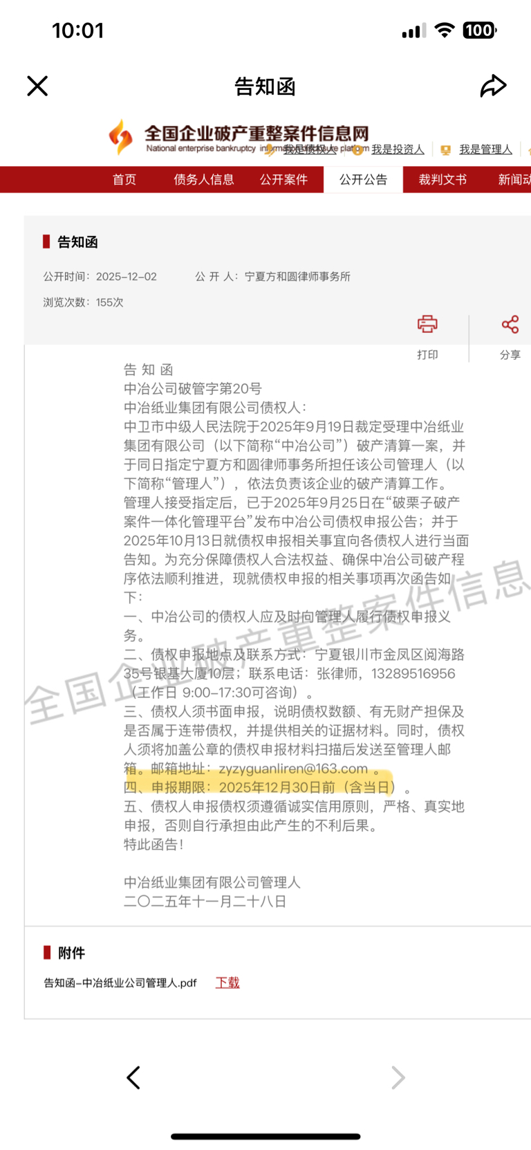 $美利云(SZ000815)$ 难怪会大跌。大家看2号发的债权人申报期限到12月30号。说明破产清算明年都不一定会完成。难怪大资金都跑了,可能都不想等那么久