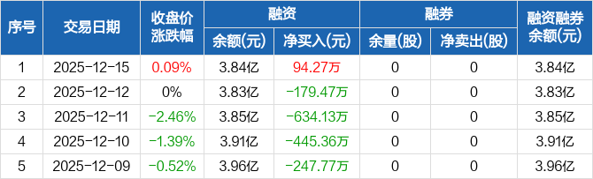美利云:融资净买入94.27万元,融资余额3.84亿元(12-15)