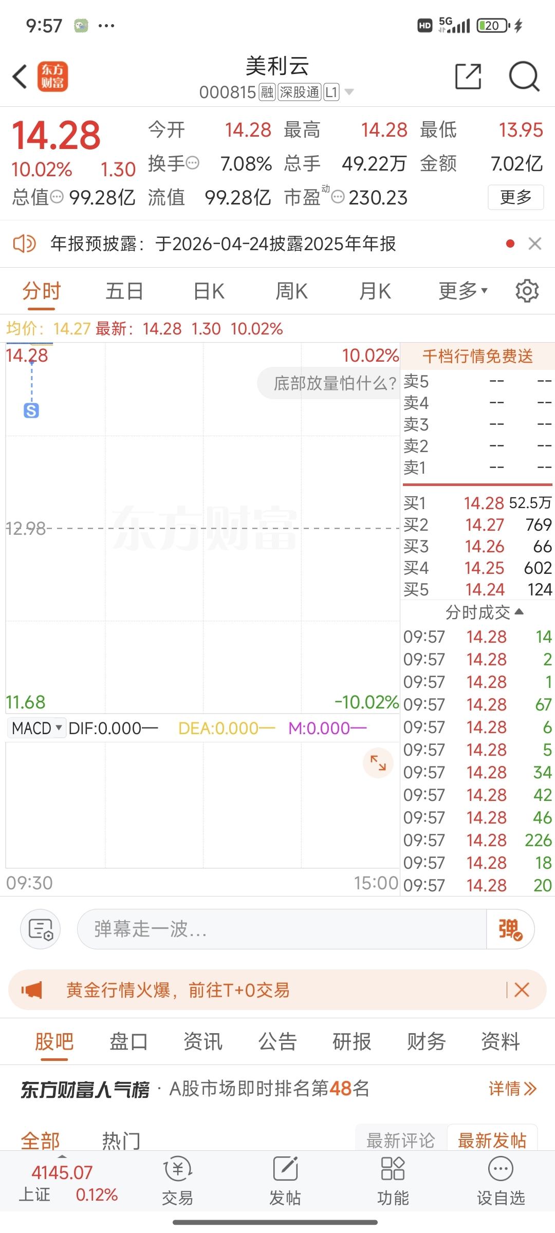 $美利云(SZ000815)$ 给个机会,已经挂了涨停板了,就开一下
