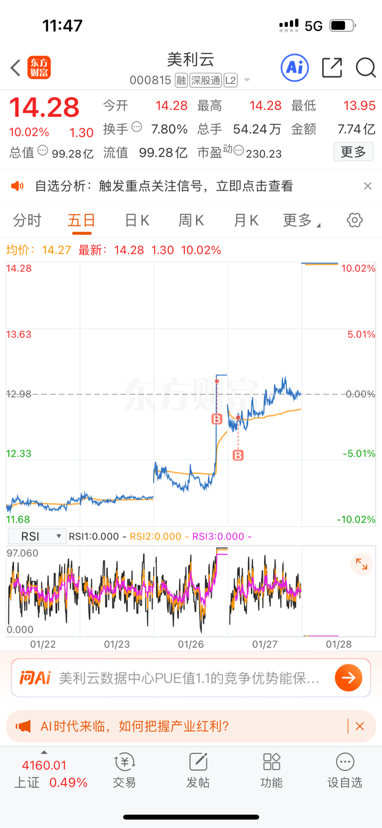 $美利云(SZ000815)$ 今天没开盘吗 怎么一动不动的
