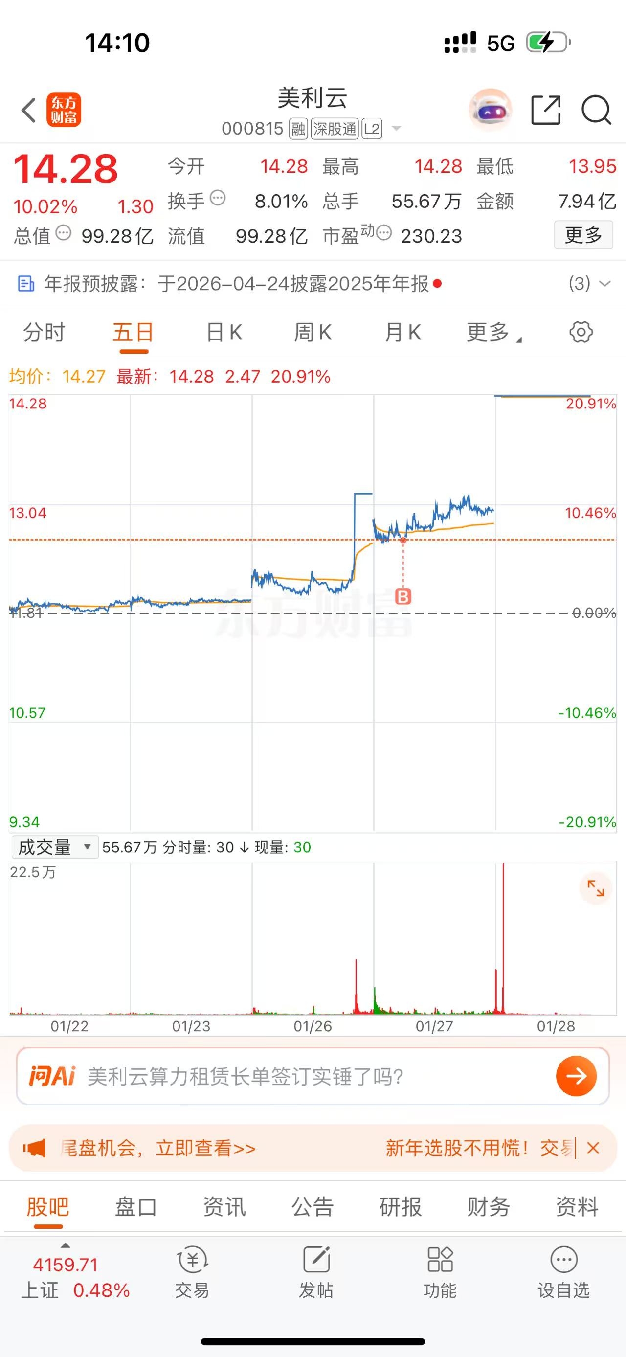 $美利云(SZ000815)$ 还是发出来得瑟得瑟吧