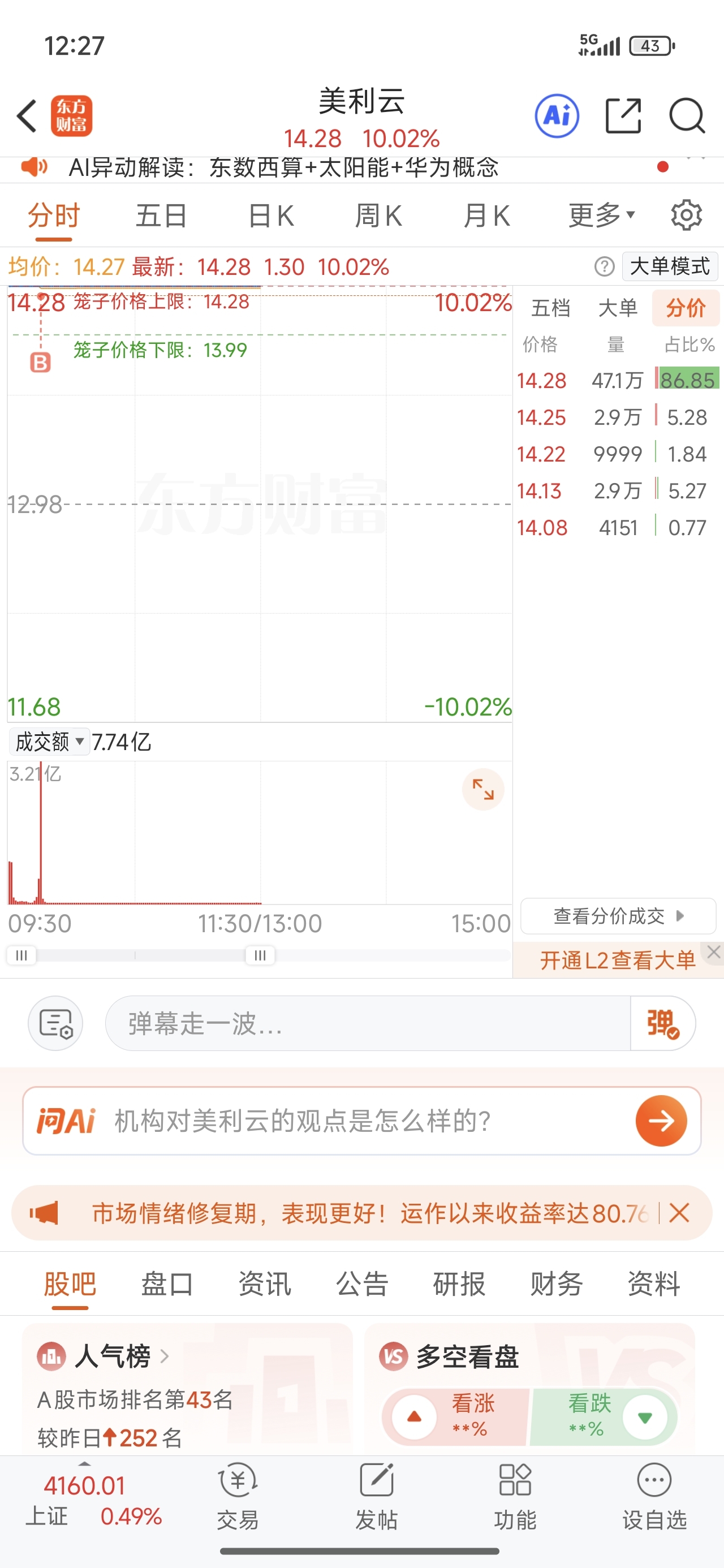 $美利云(SZ000815)$ 兄弟们,我在车上,明天谁来顶板买票啊