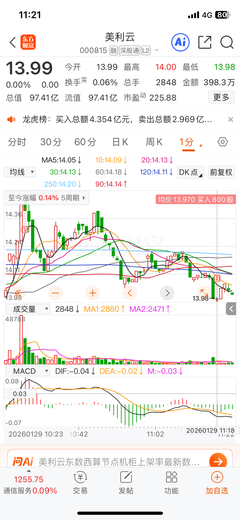 $美利云(SZ000815)$ 这是bug 吗?97成交,显示最低98