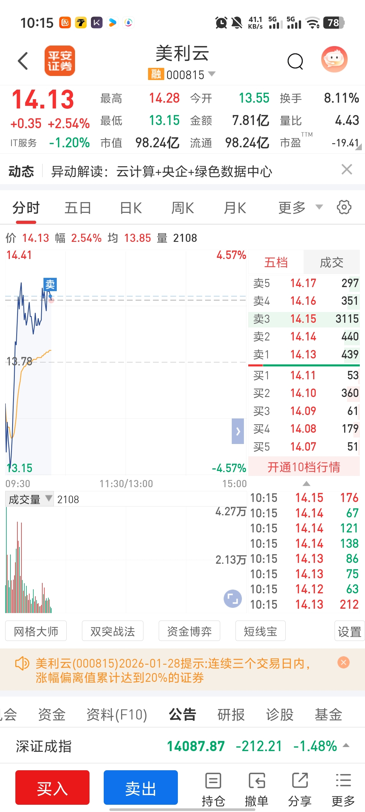 $美利云(SZ000815)$ 卖1/4,剩下继续格局