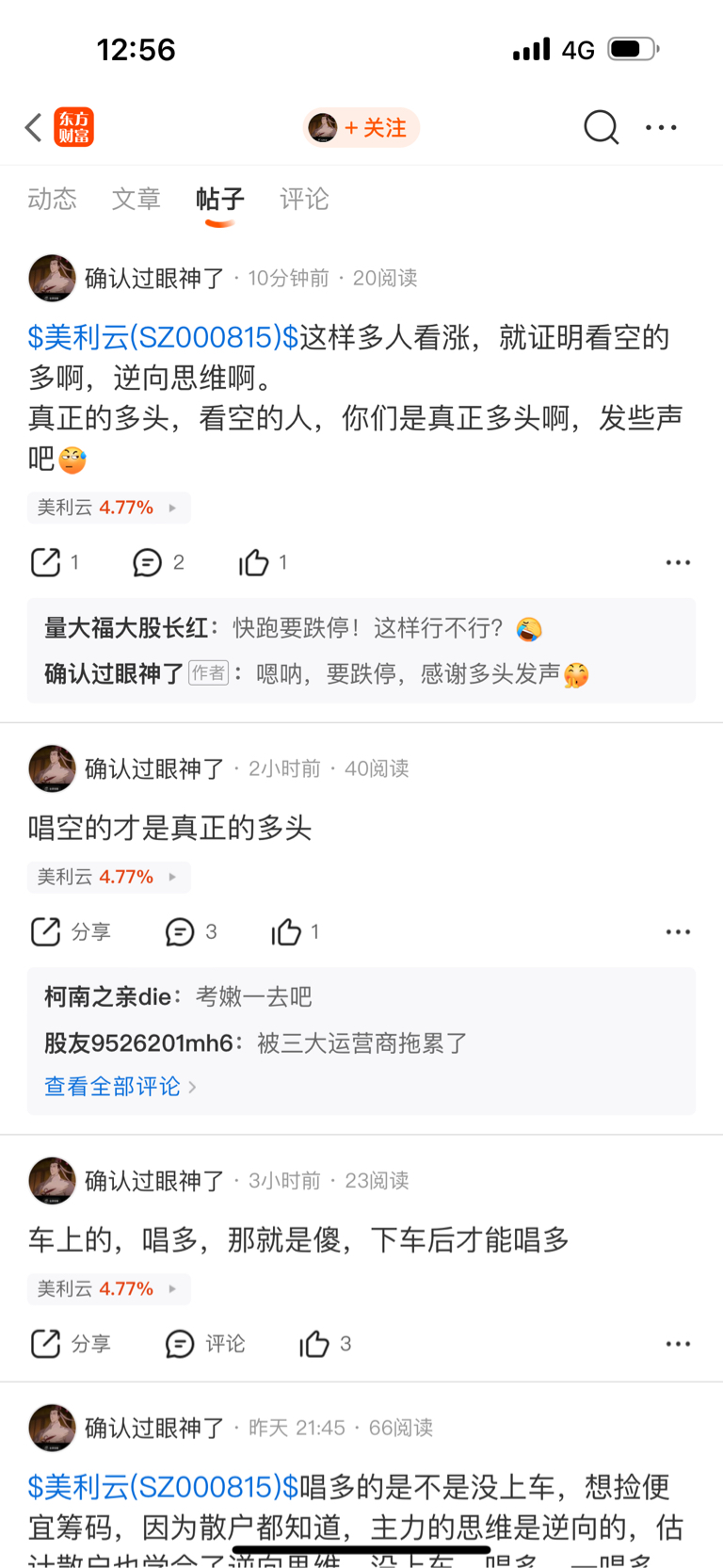 $美利云(SZ000815)$ @确认过眼神了 这种属于内心戏过多的戏精,哪个主力操盘会看股吧发贴