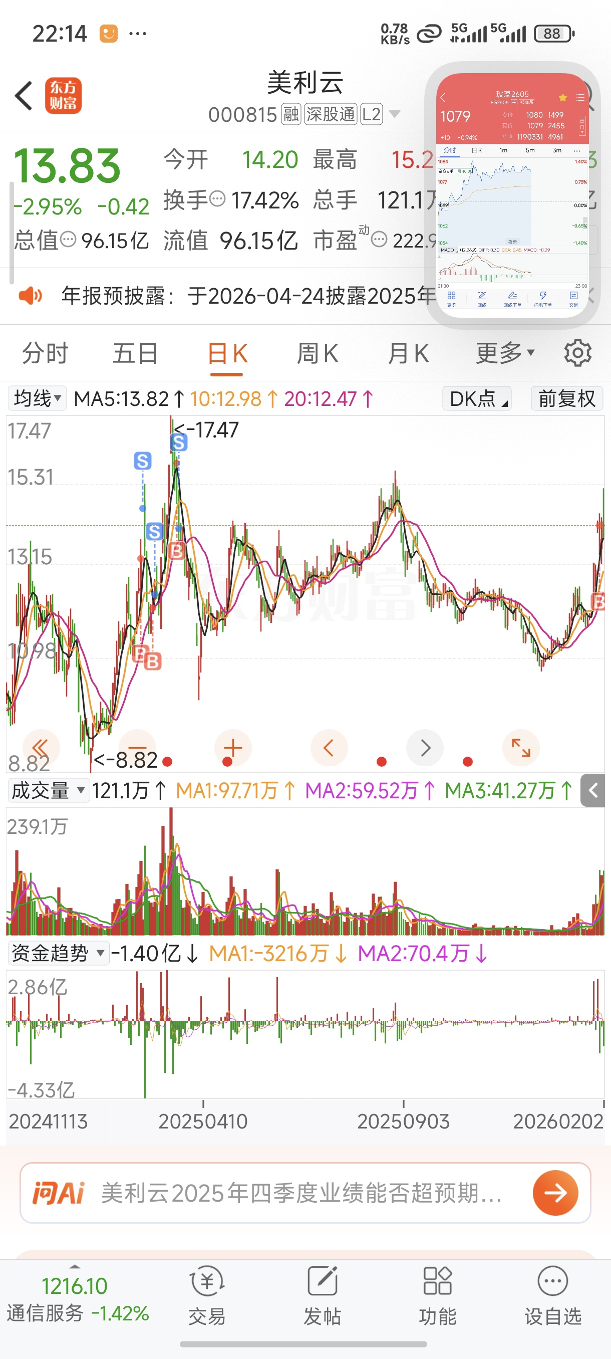 $美利云(SZ000815)$ 明天低开我真加仓,今天眼看着涨5个点一路下来我都格局了,就怕突然起飞!
