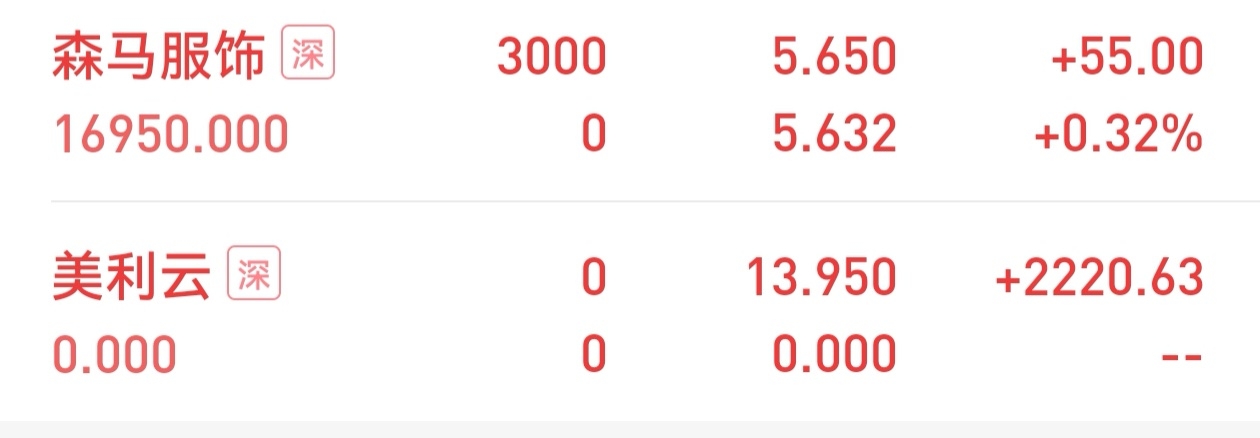 $美利云(SZ000815)$ 感谢主力,小赚2220买衣服去了$森马服饰(SZ002563)$