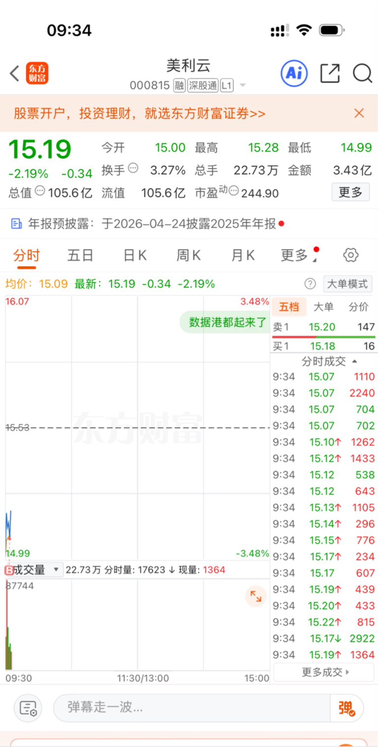 15.08选择低吸博弈$美利云(SZ000815)$ 值得期待