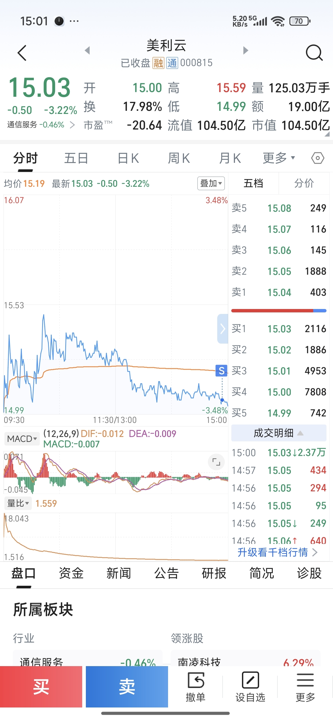 $美利云(SZ000815)$ 我走了,明天你就一字板吧