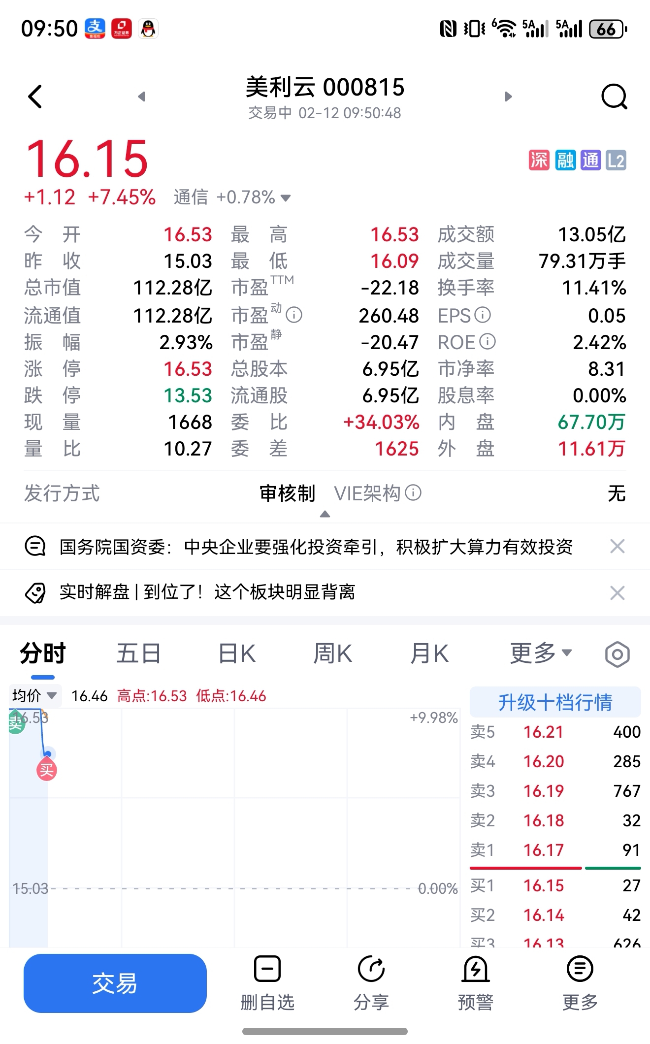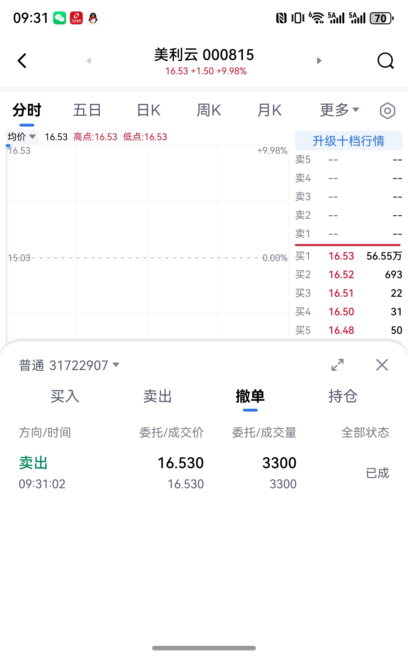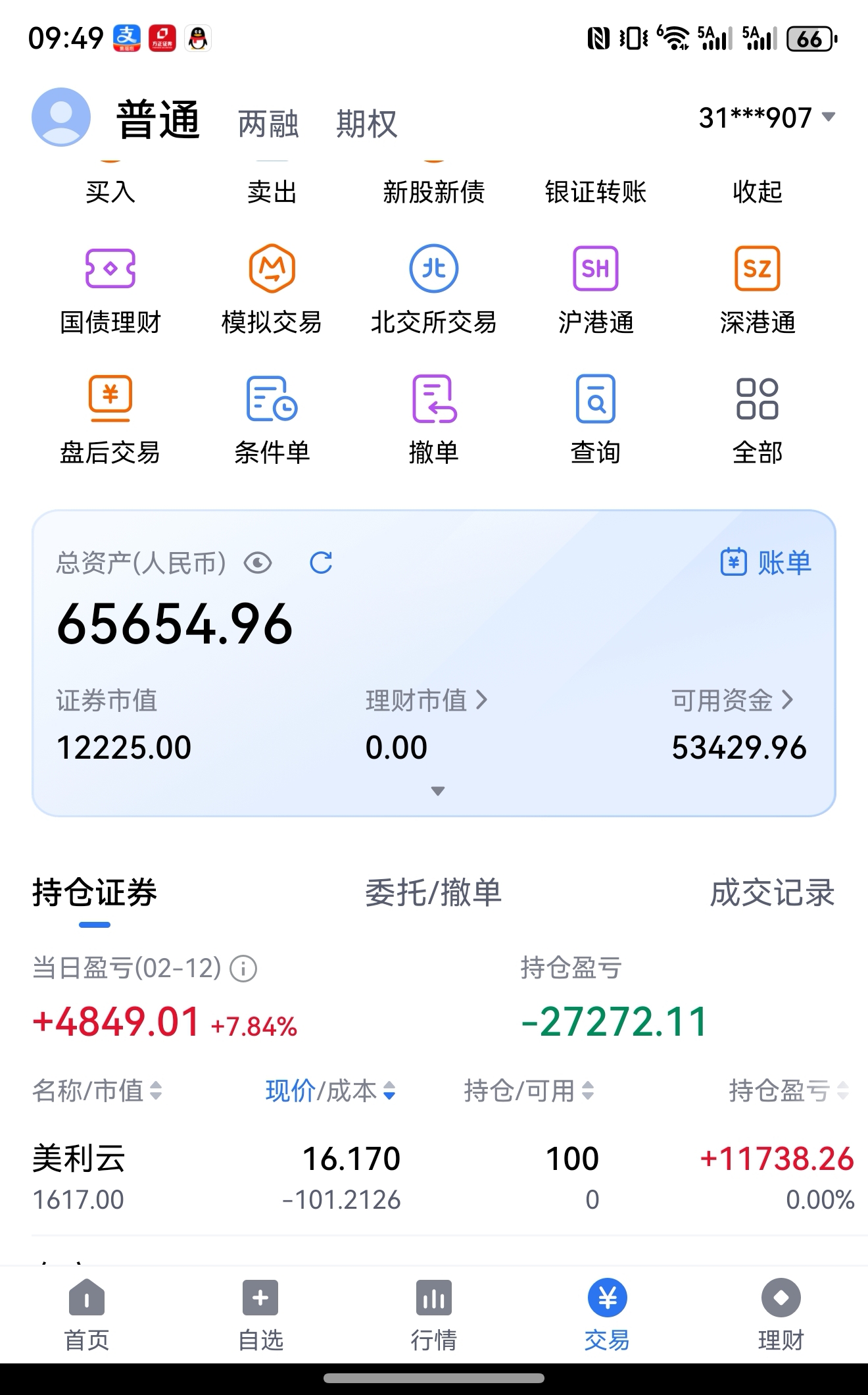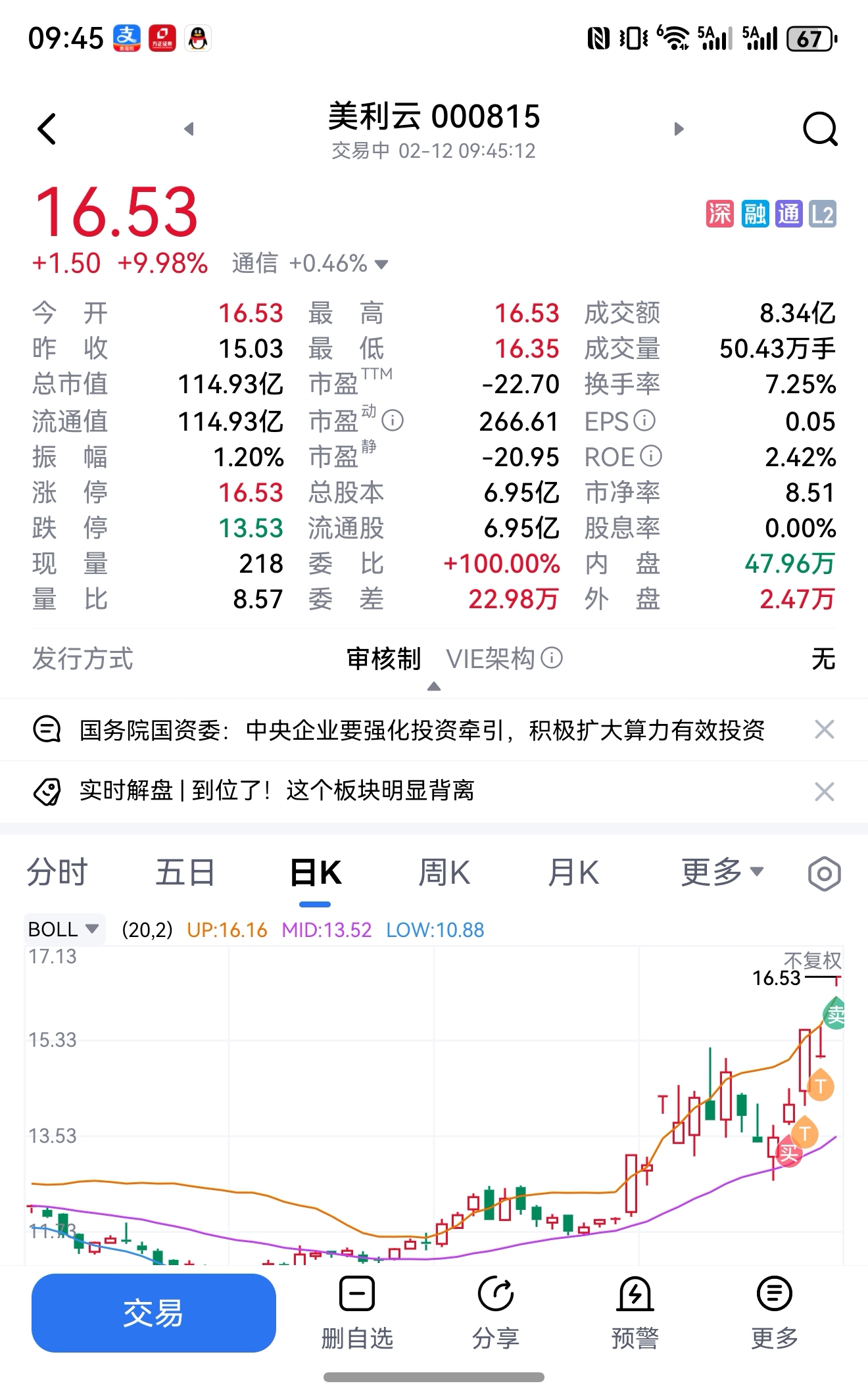 历时一周,挣20%!今天开盘清仓,后又高价买进了100股,留个念想!年后再战!留