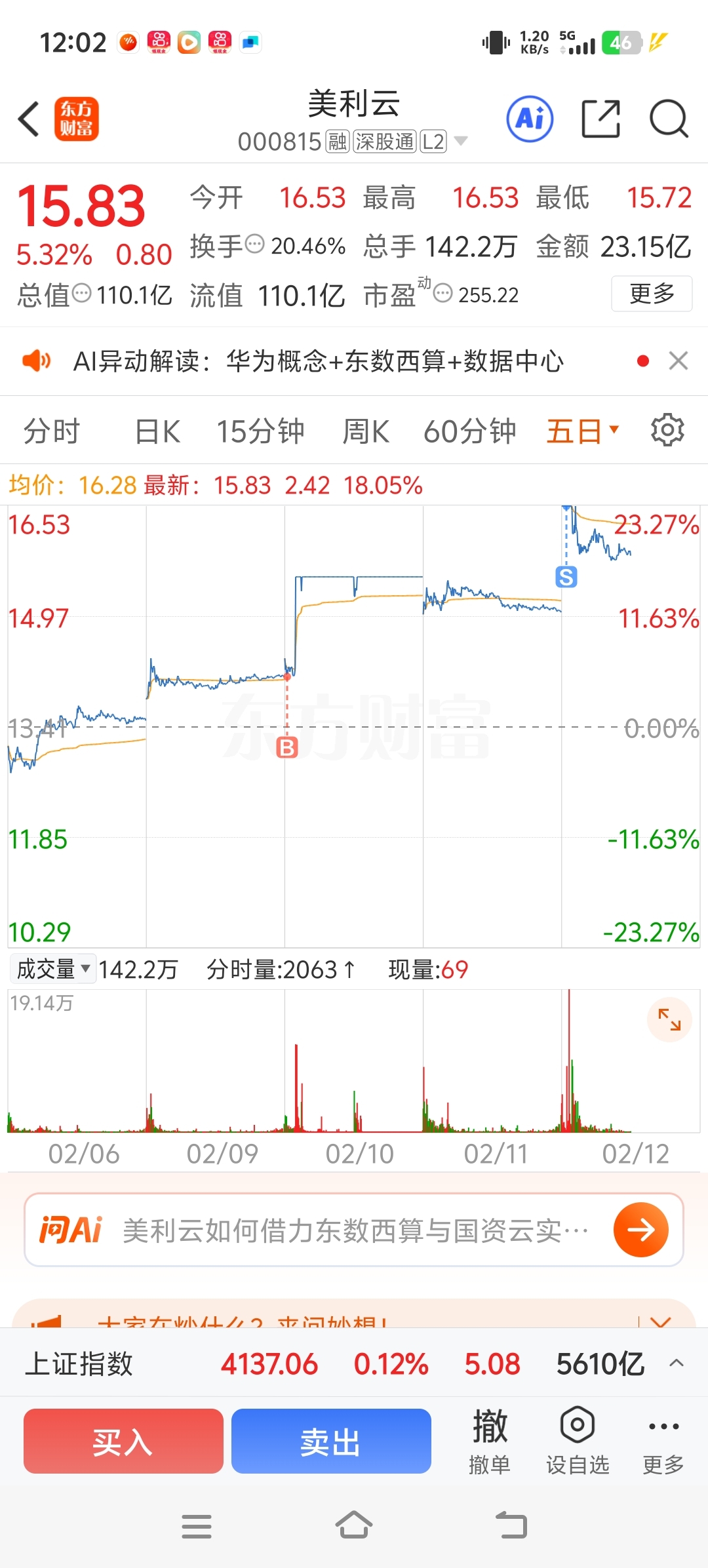 $美利云(SZ000815)$ 赚了十几厘米走人