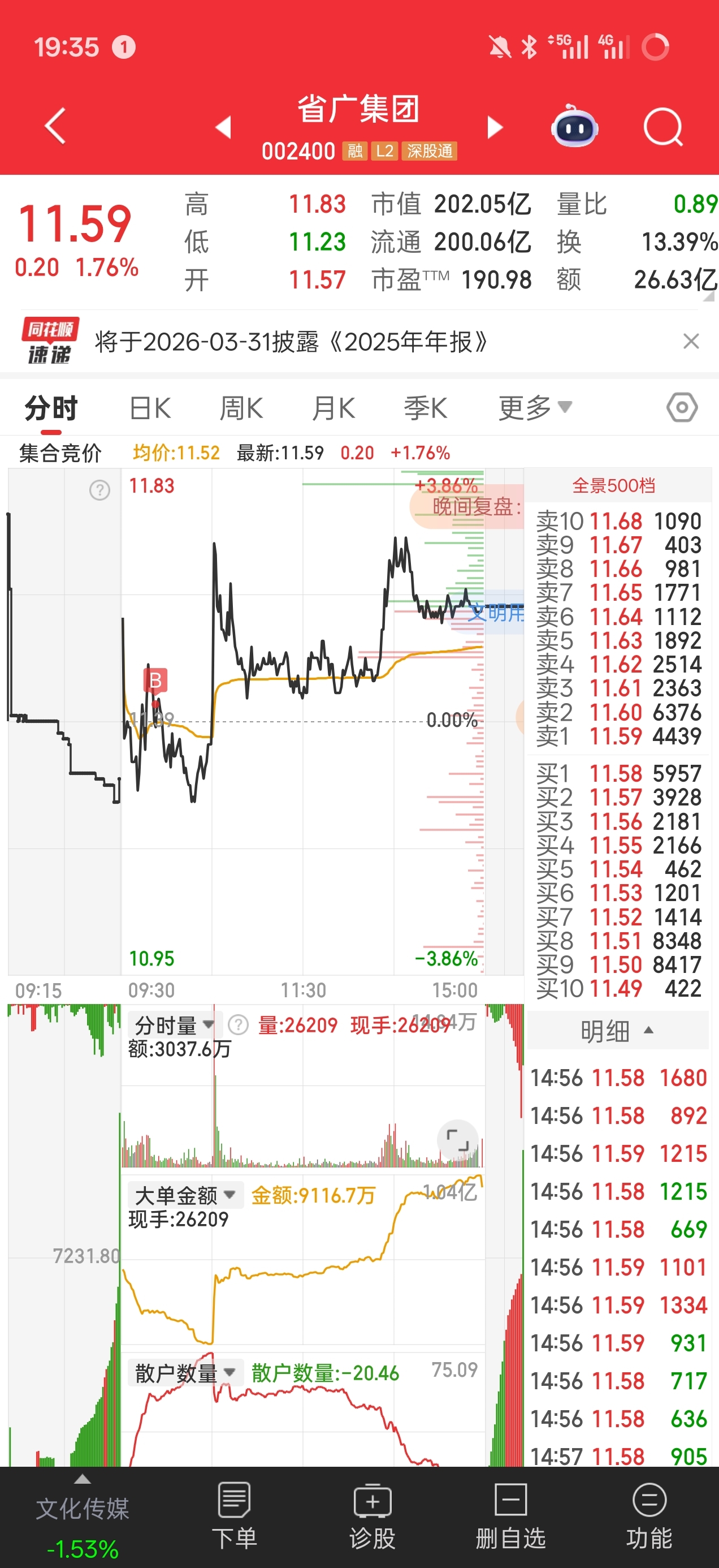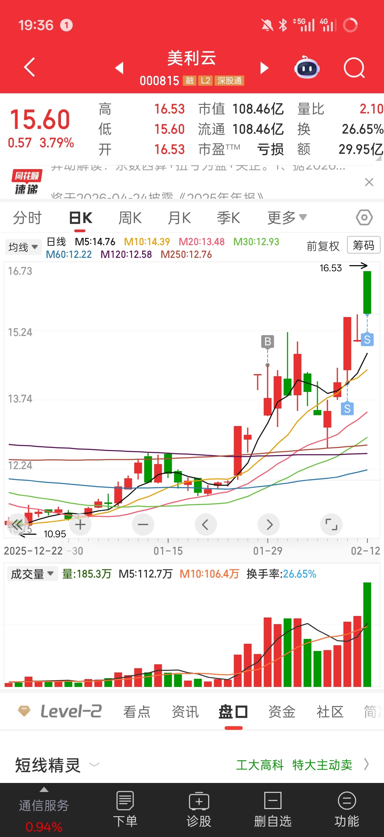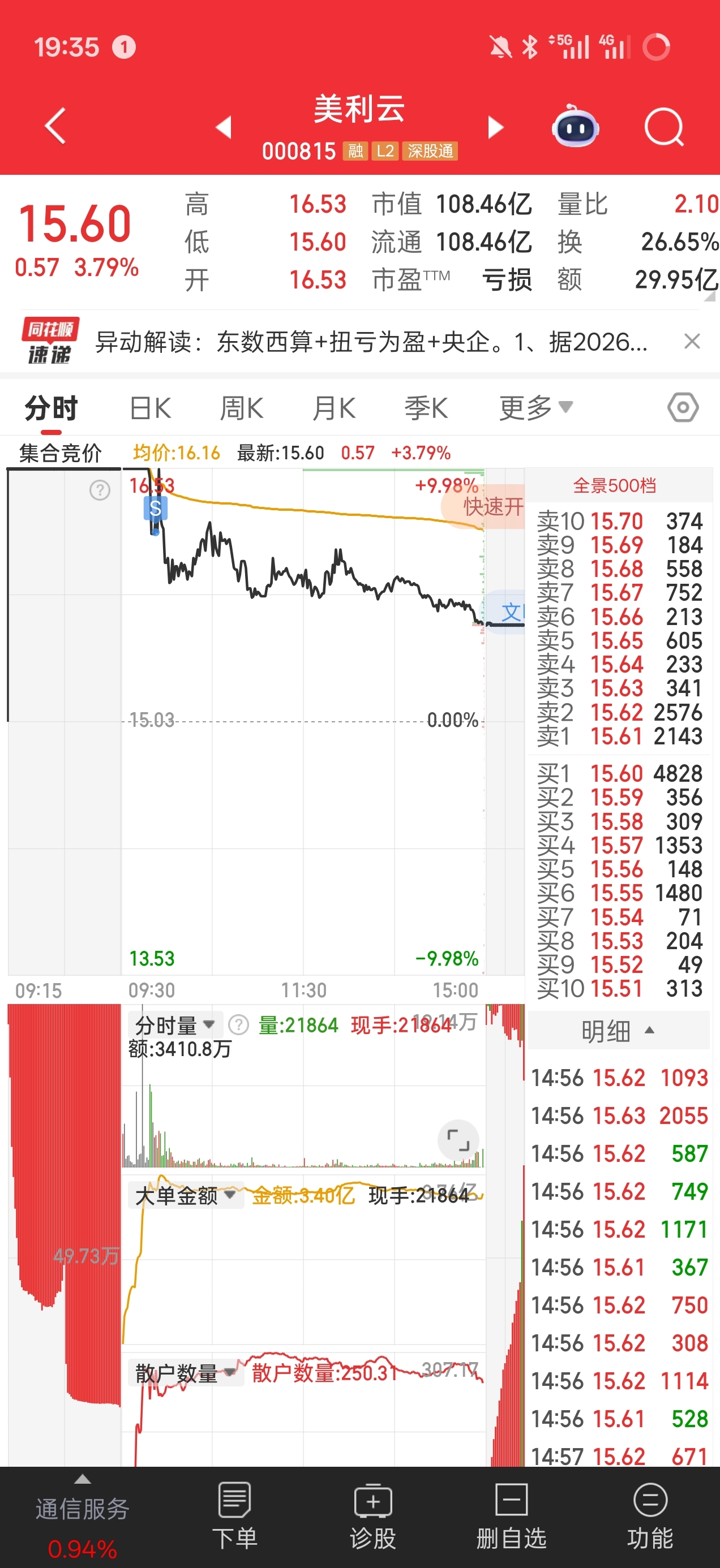 美利云早盘炸板回落的时候止盈卖出,省广集团水面附近加仓,引力传媒昨天深水区捞回1
