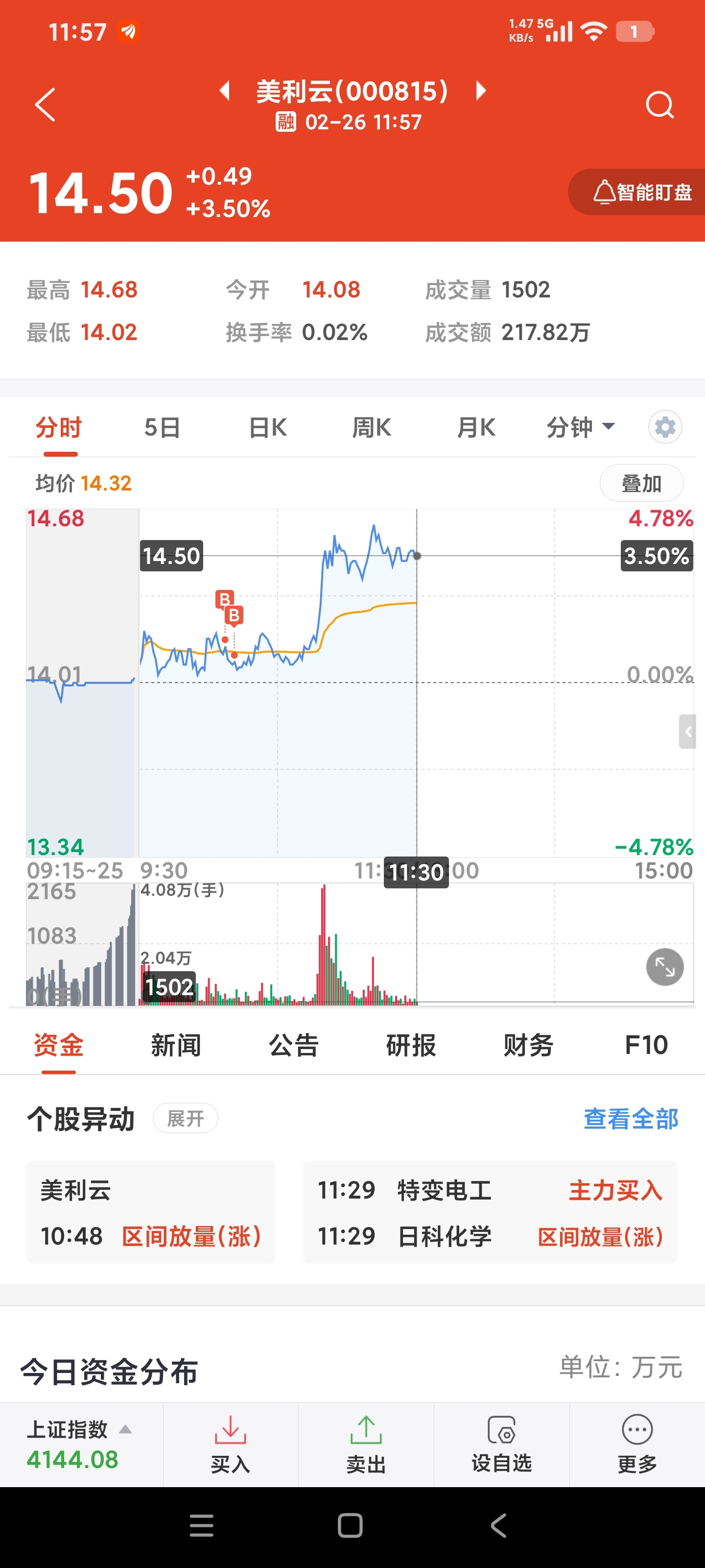$美利云(SZ000815)$ 14.06,14.1分别补仓50手