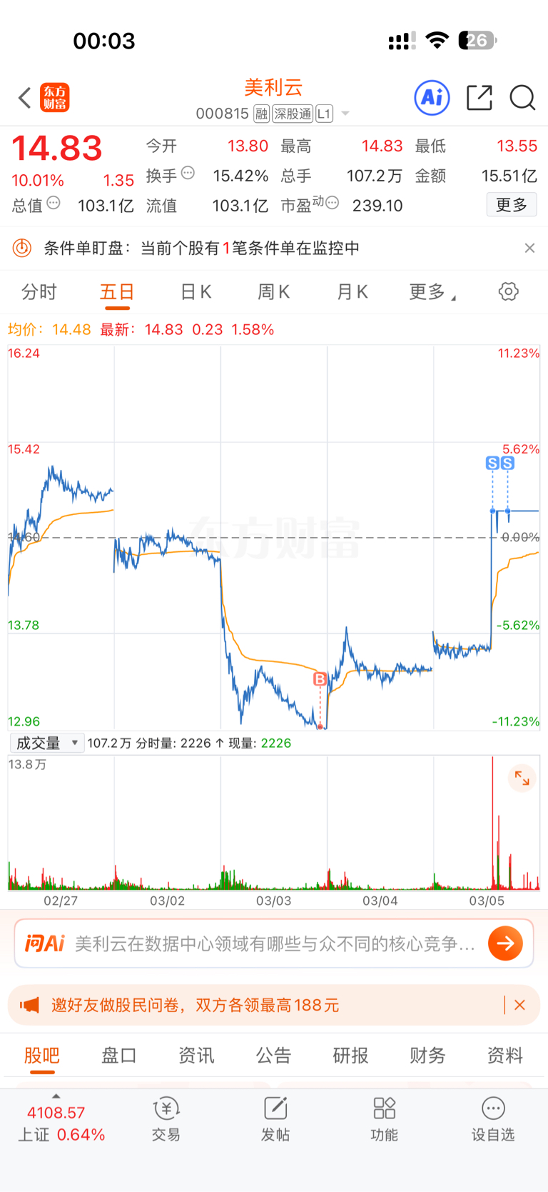 $美利云(SZ000815)$ 虽然T了,但还是希望6号连板