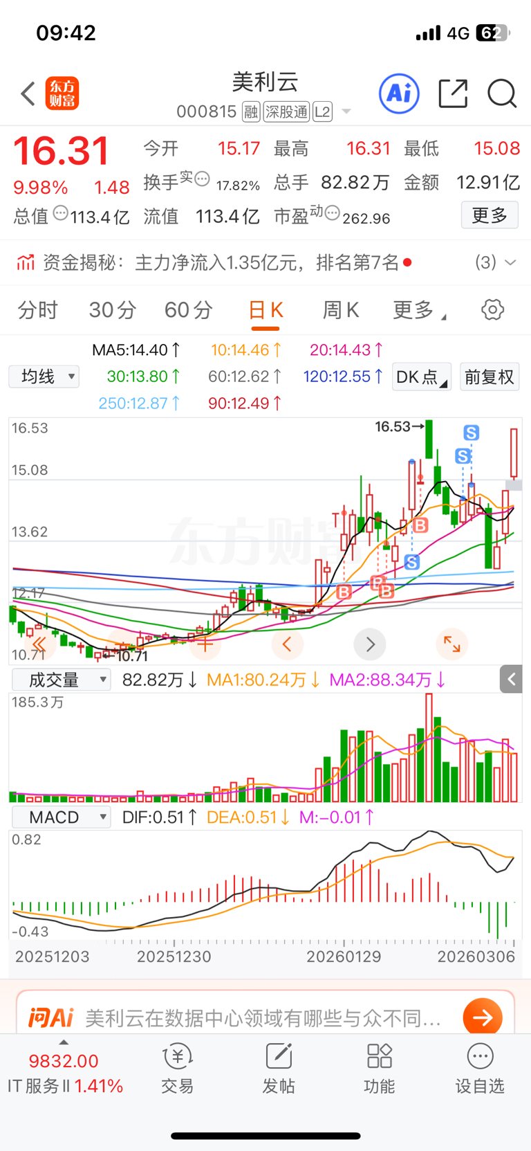 $美利云(SZ000815)$ 我拿的时候没这么猛,总是开盘,高开低走;现在封的这么坚决