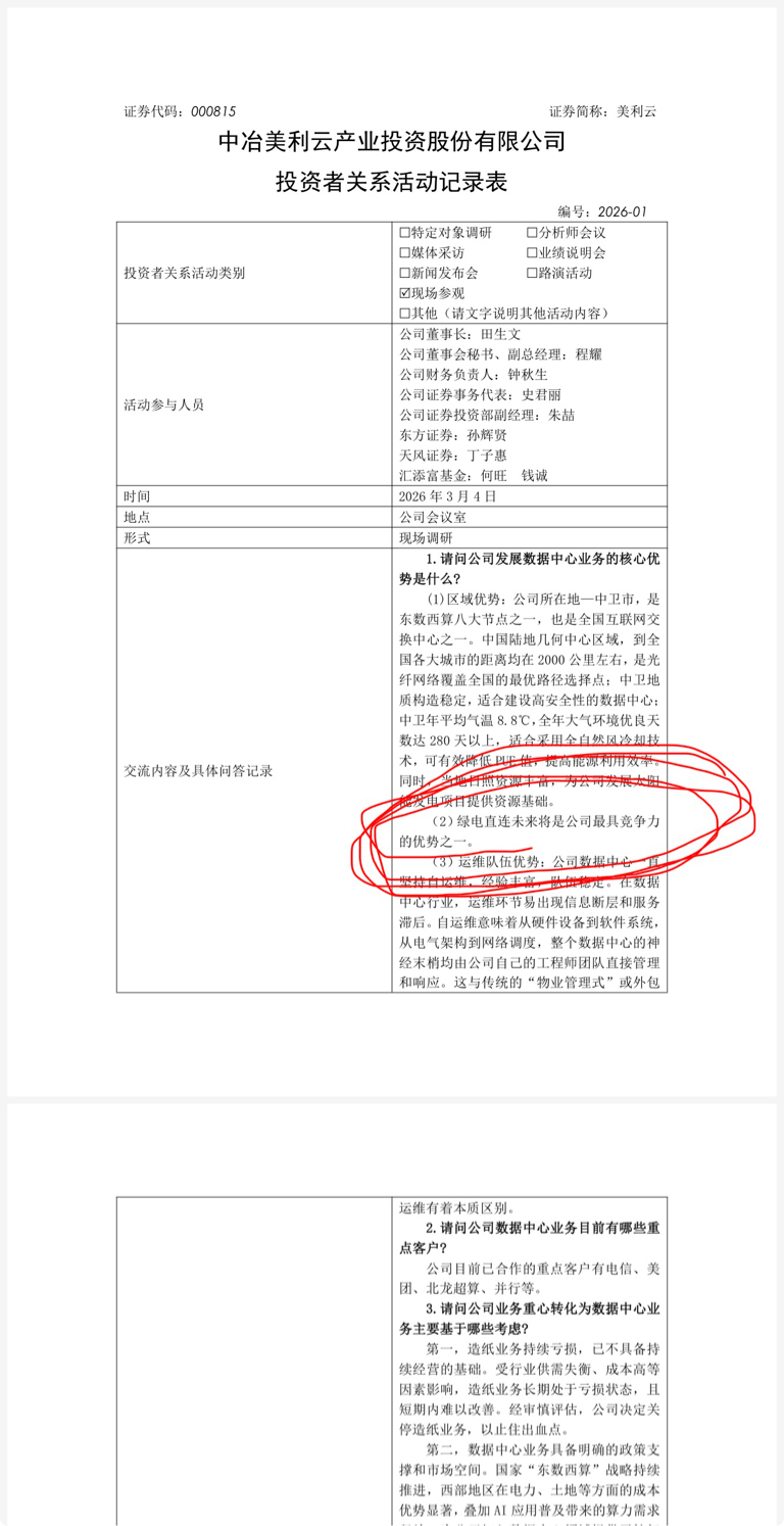 美利云是算电一体化的两市第一龙