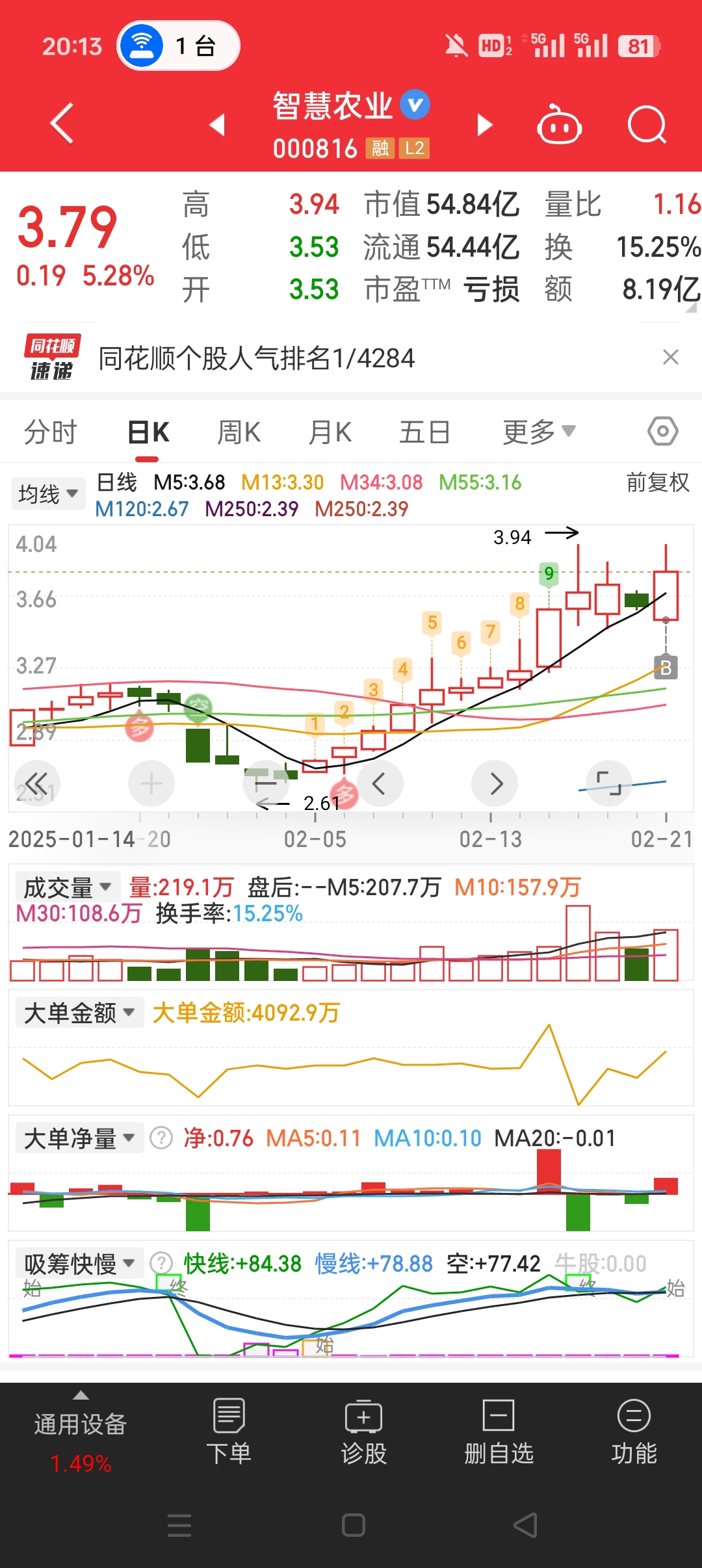 $智慧农业(SZ000816)$ 同花里面人气第一,意味着什么知道吗?