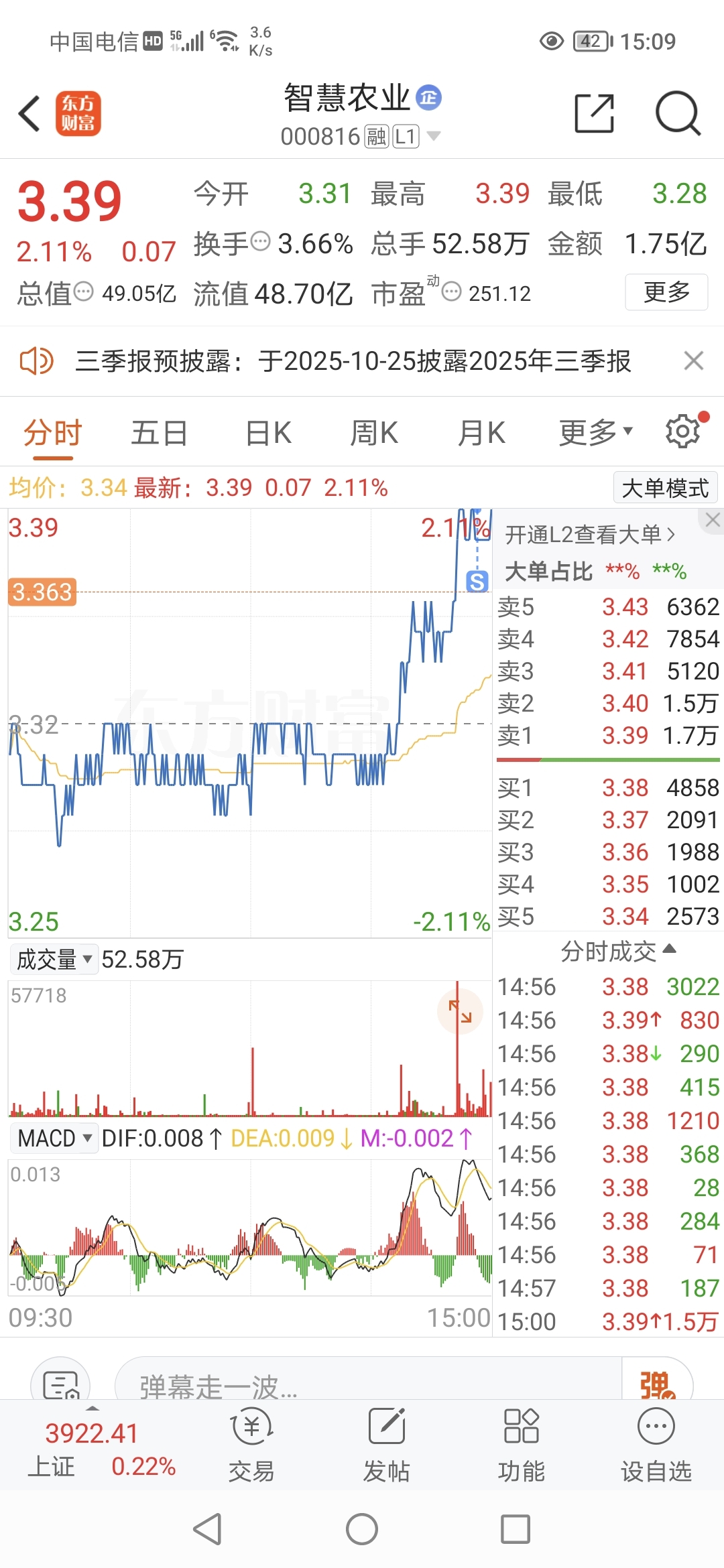 $智慧农业(SZ000816)$ 没忍住是不是卖飞了