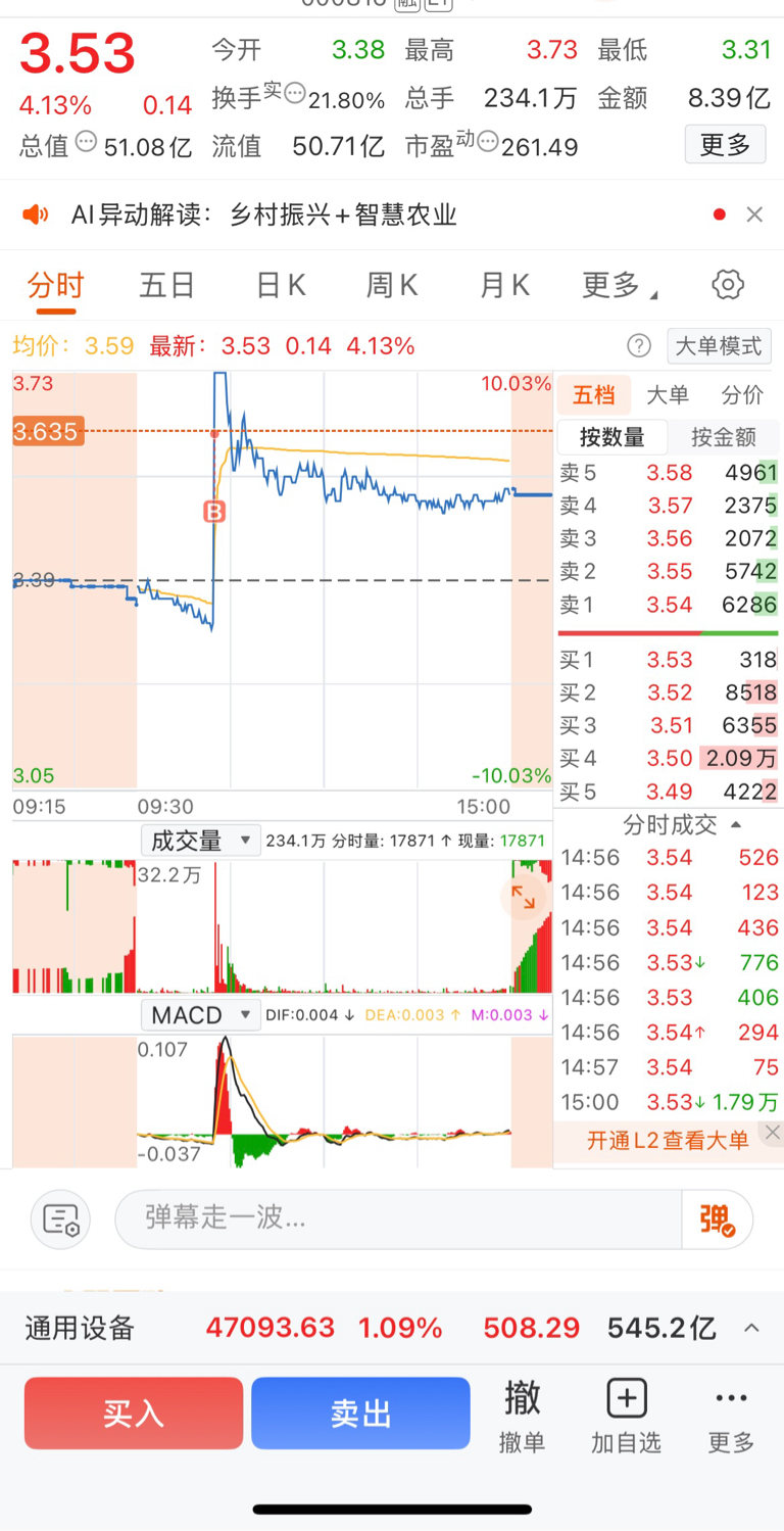 $智慧农业(SZ000816)$ 有量有价,看周一表现