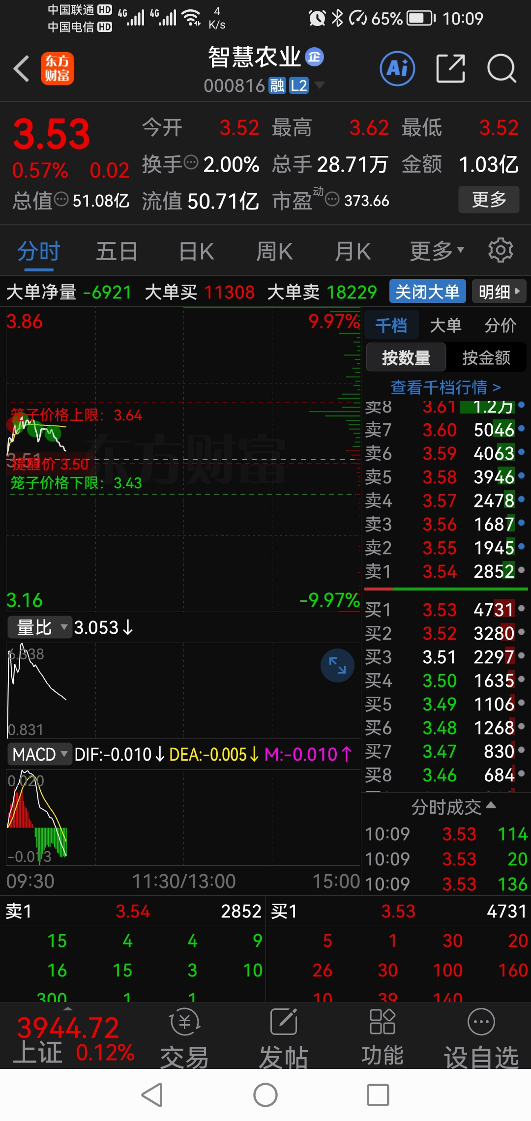 $智慧农业(SZ000816)$ 小钱拉升到压力位,横盘减仓,在砸盘,成功了坐山观散户斗
