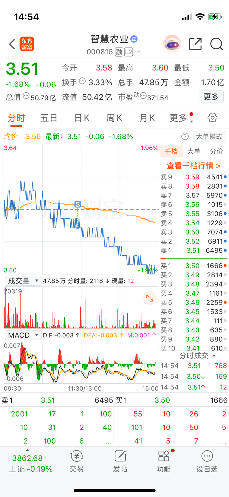 $智慧农业(SZ000816)$ 识相的我,今天已经减仓,只有跟随主力的步伐,才能从从容容,游刃有余