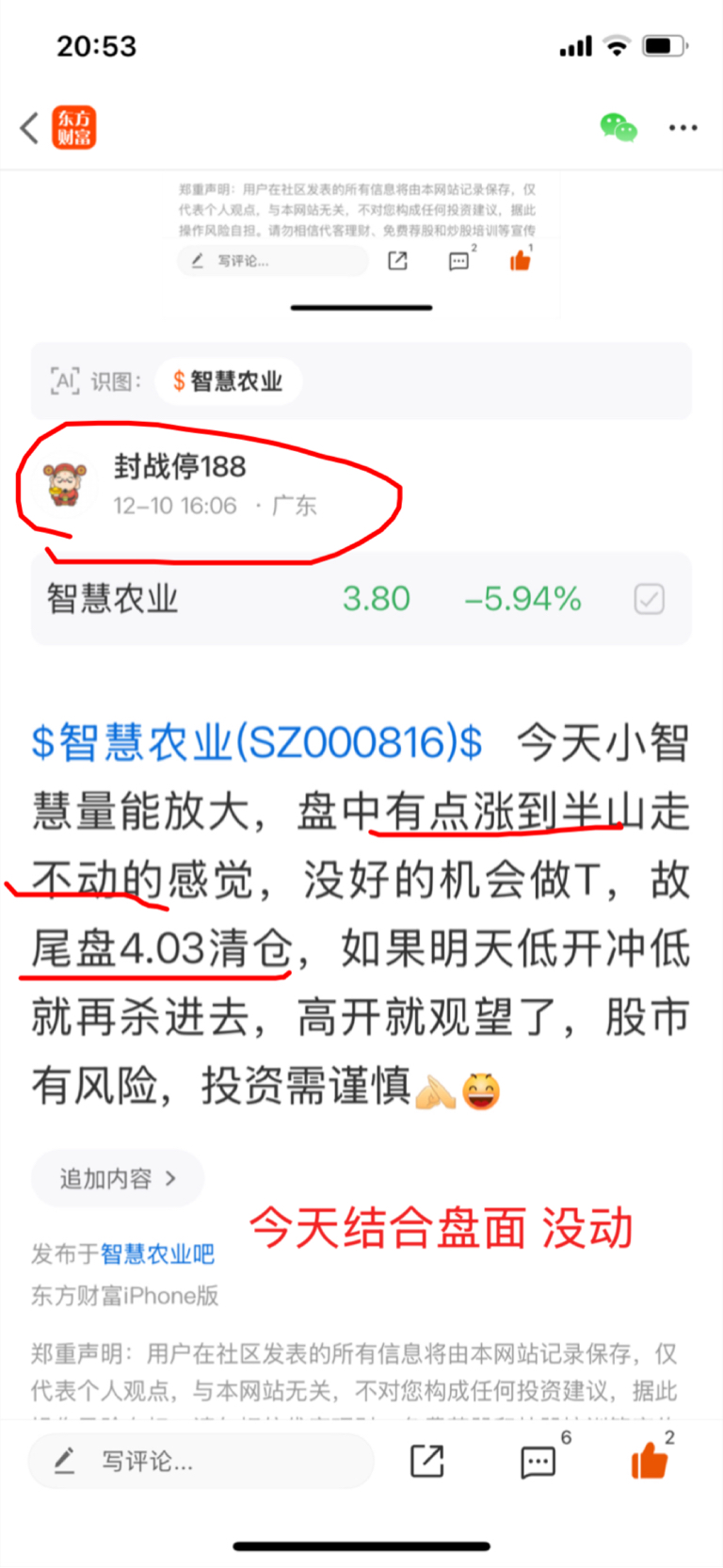 $智慧农业(SZ000816)$ 今天小智慧缩量回调,还是不乐观,根据盘面和结合大盘不稳定,今天还是没动,继续看看明天盘面的变化再决定,股市有风险,投资需谨慎