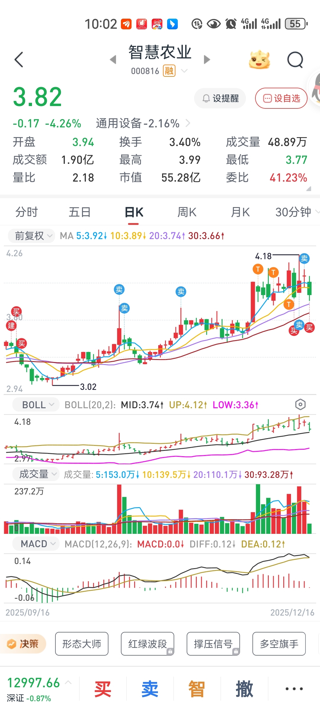 $智慧农业(SZ000816)$ 还好前天和昨天都卖了。今天20日线买回来,不知道明天有没有戏?明天再跌就彻底不看了