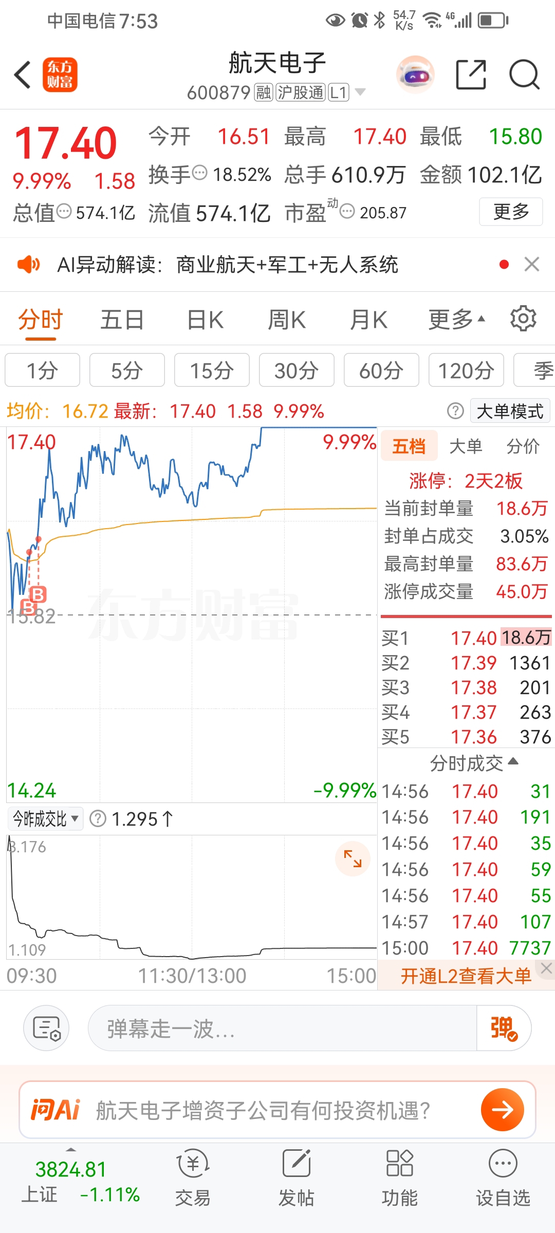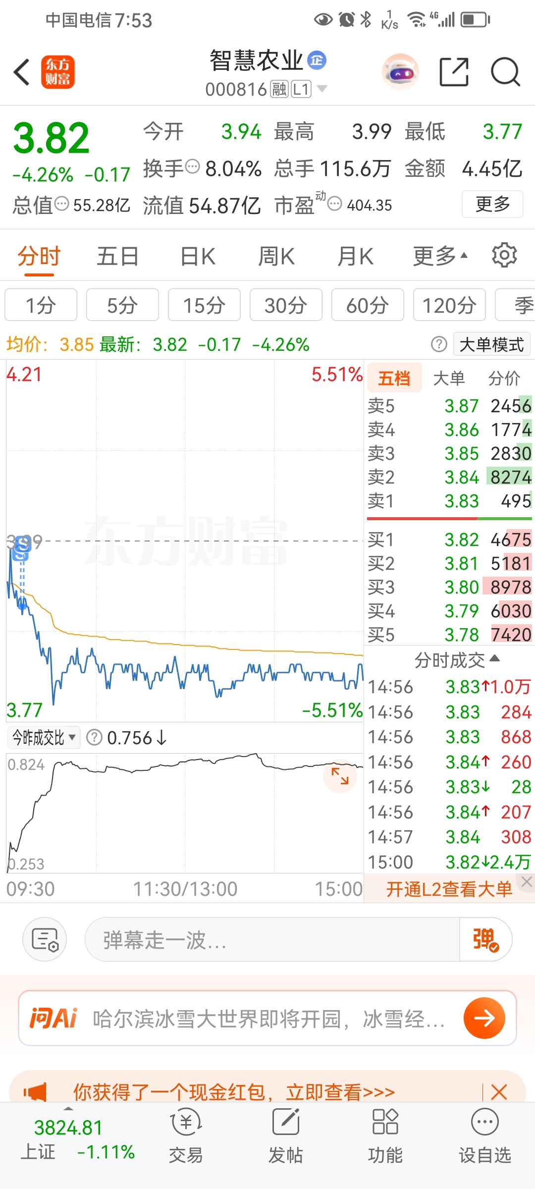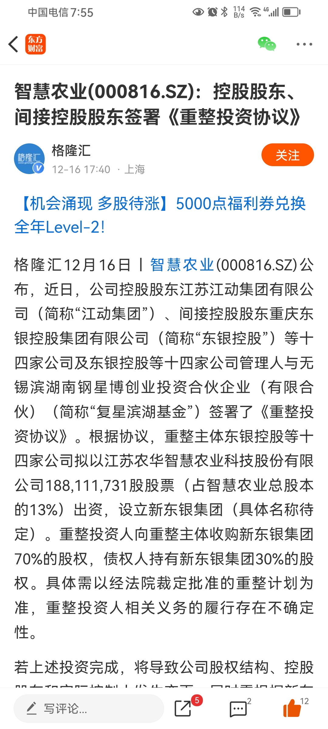 原来看好智慧农业重组预期,早上跌破五日线就卖了换航天电子,结果智慧农业盘后出公告
