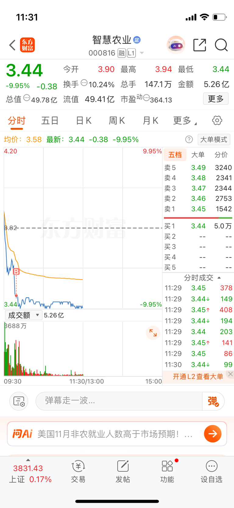 $智慧农业(SZ000816)$ 今天是短期内最后买入一次,捡回一些丢失的筹码,3天内做了5毛钱差价,还算比较成功