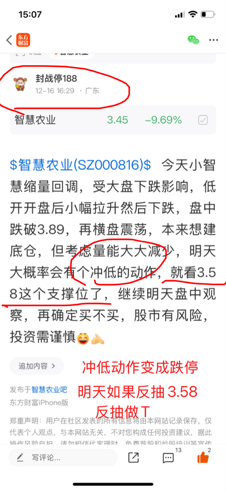 $智慧农业(SZ000816)$ 小智慧今天伴随公告放量跌停,一点半不到跌停,然后打开,快收盘再次跌停,反反复复打开跌停,通过盘面最后还是以3.44建三分一底仓,明天如果低开再下杀就加仓,冲高就抛,高开冲高就卖掉今天的底仓,回落就接回,否则就做个短线罢了(昨天股友回复,说什么3.58,哈哈哈),股市有风险,投资需谨慎