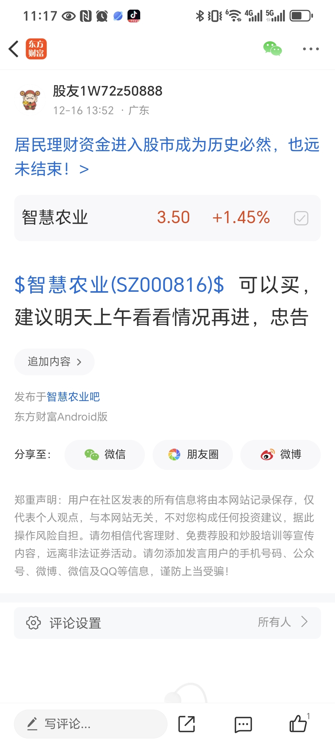 温馨提示: 1.根据《证券法》规定,禁止编造、传播虚假信息或者误导性信息,扰乱证券市场;2.用户在本社区发表的所有资料、言论等仅代表个人观点,与本网站立场无关,不对您构成任何投资建议。用户应基于自己的独立判断,自行决定证券投资并承担相应风险。《东方财富社区管理规定》