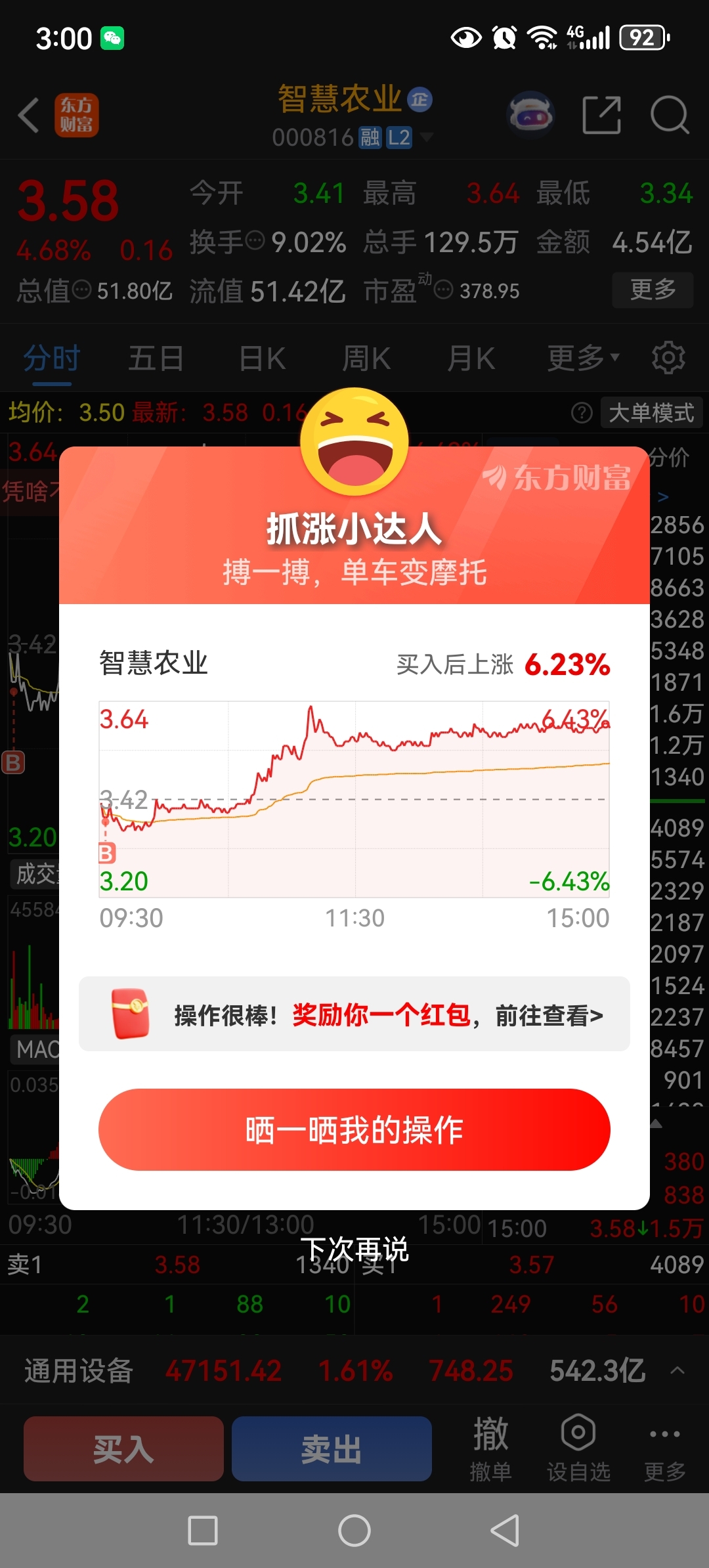$智慧农业(SZ000816)$ 不能看评论扰乱自己的想法,3.33那天我想买,都说跌停买,结果我看走势不对隔日9.25就挂单开盘就成交了,拿着4.3出