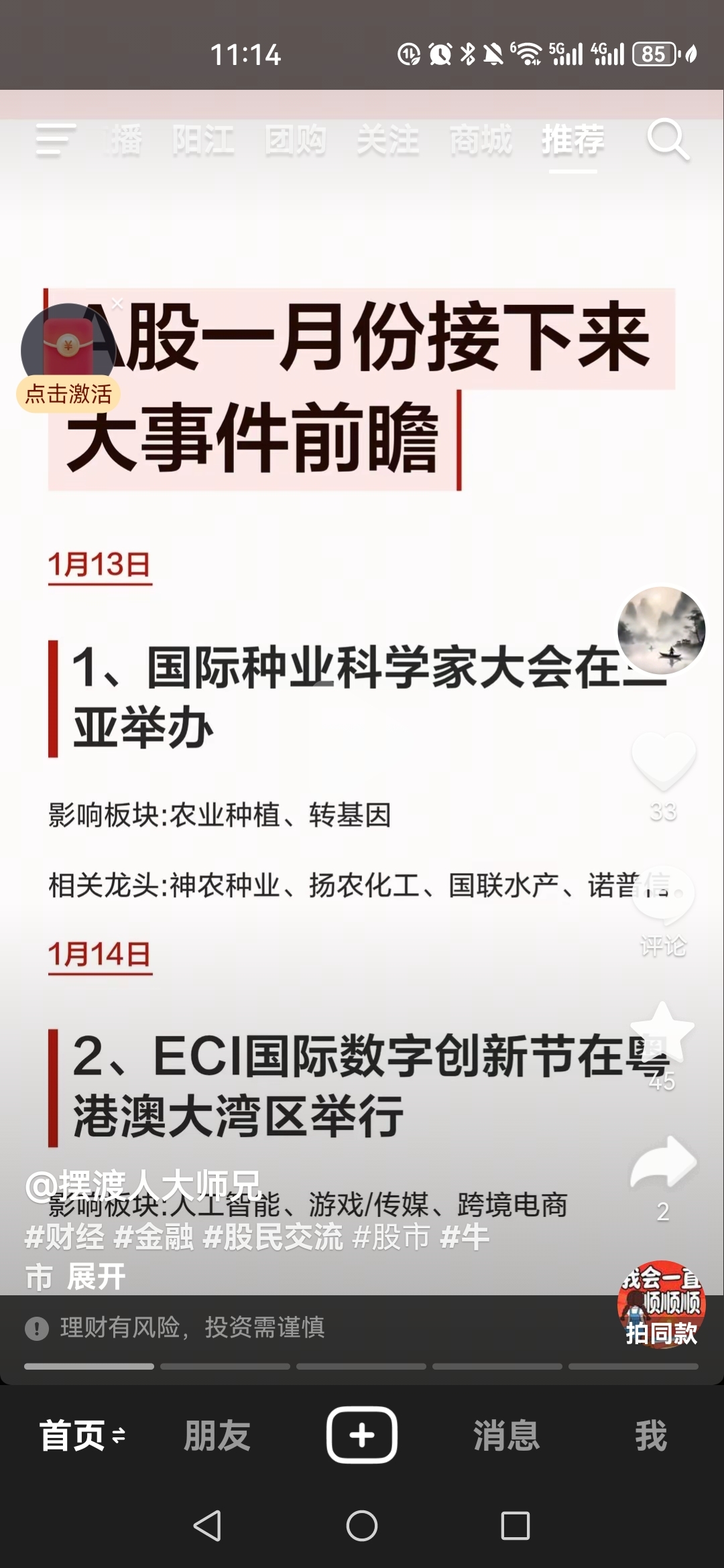 郑重声明:用户在财富号/股吧/博客等社区发表的所有信息(包括但不限于文字、视频、音频、数据及图表)仅代表个人观点,与本网站立场无关,不对您构成任何投资建议,据此操作风险自担。请勿相信代客理财、免费荐股和炒股培训等宣传内容,远离非法证券活动。请勿添加发言用户的手机号码、公众号、微博、微信及QQ等信息,谨防上当受骗!