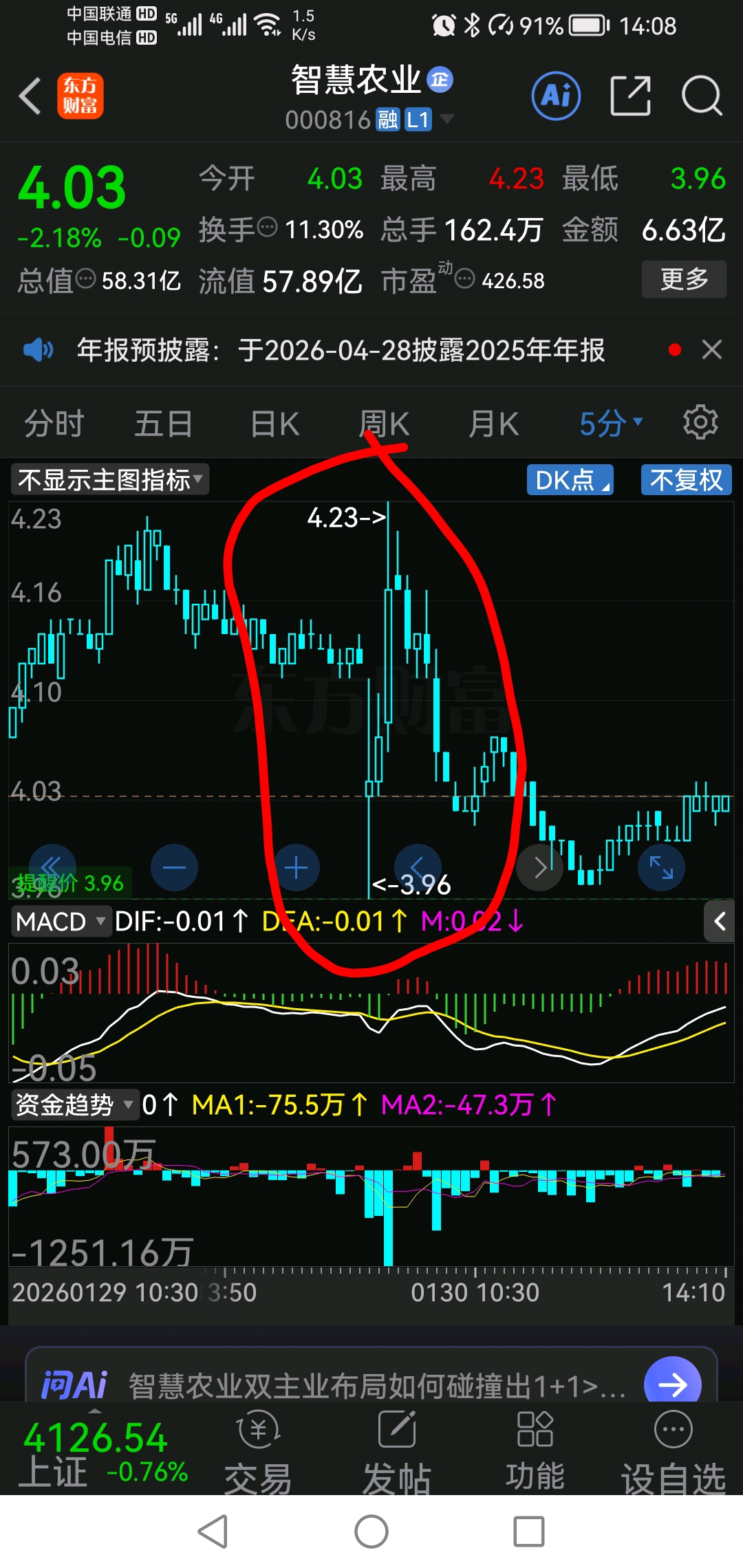 $智慧农业(SZ000816)$ 后期的底和顶,但愿一直在4.02之上运行,下周不在破四了,短线预测支撑压力,