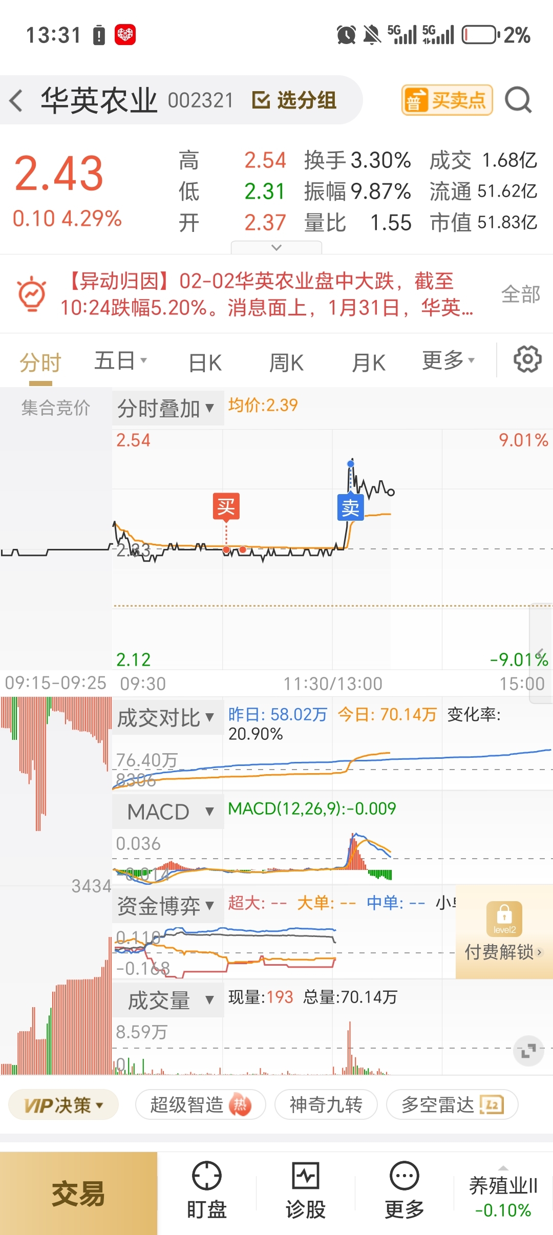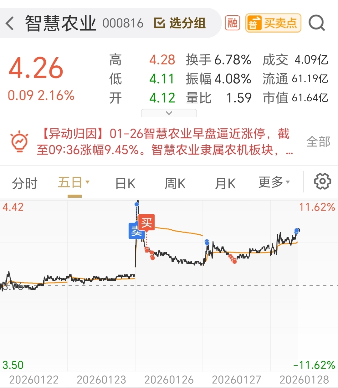 智慧农业九个点,华英七个点,今天爆挣,就是做了个小T失误了,整体还是大挣!