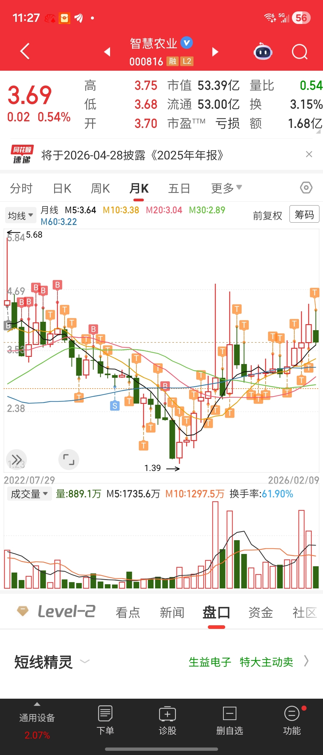 $智慧农业(SZ000816)$ 四年了换来了什么? 随便一个票四年都翻倍了吧…