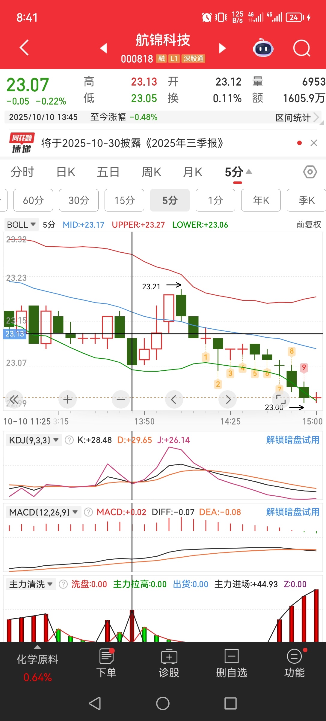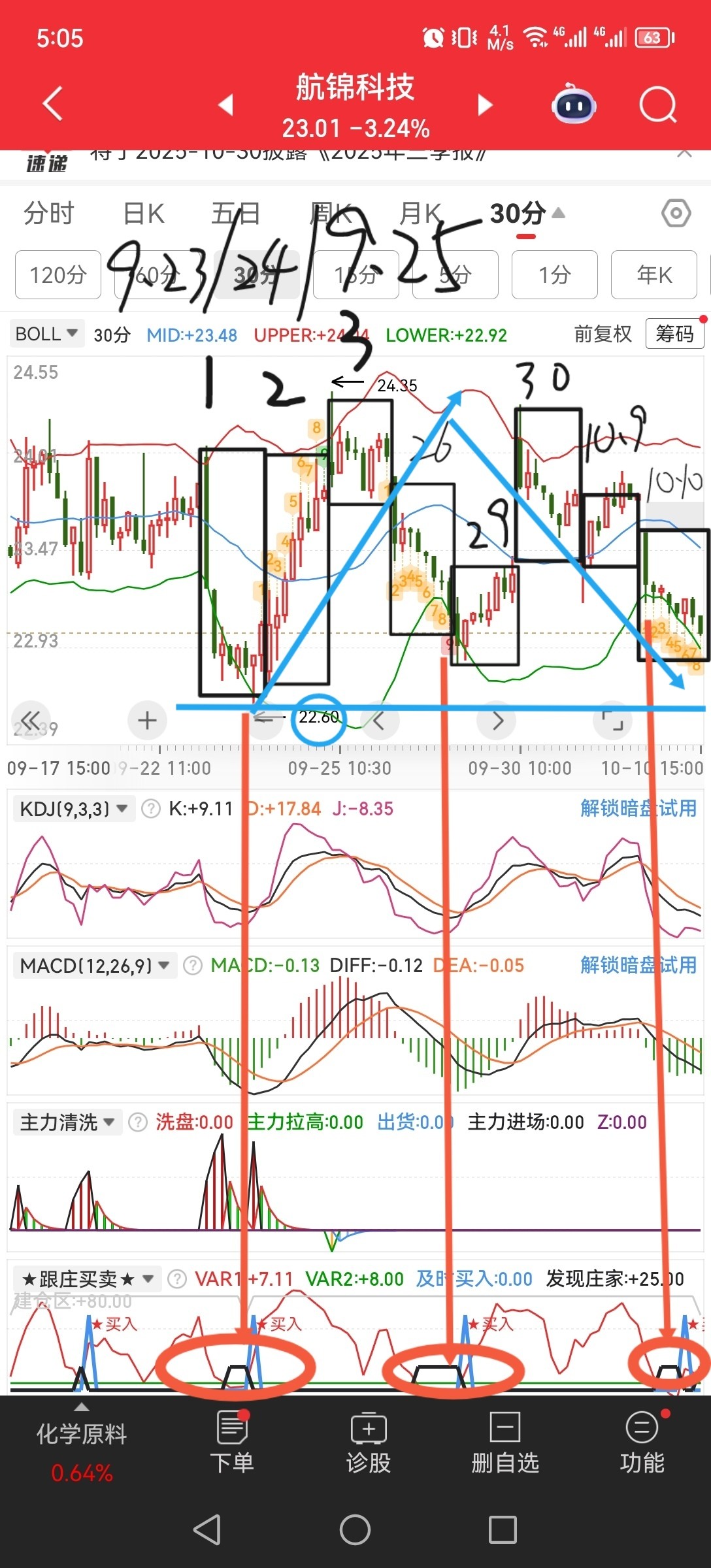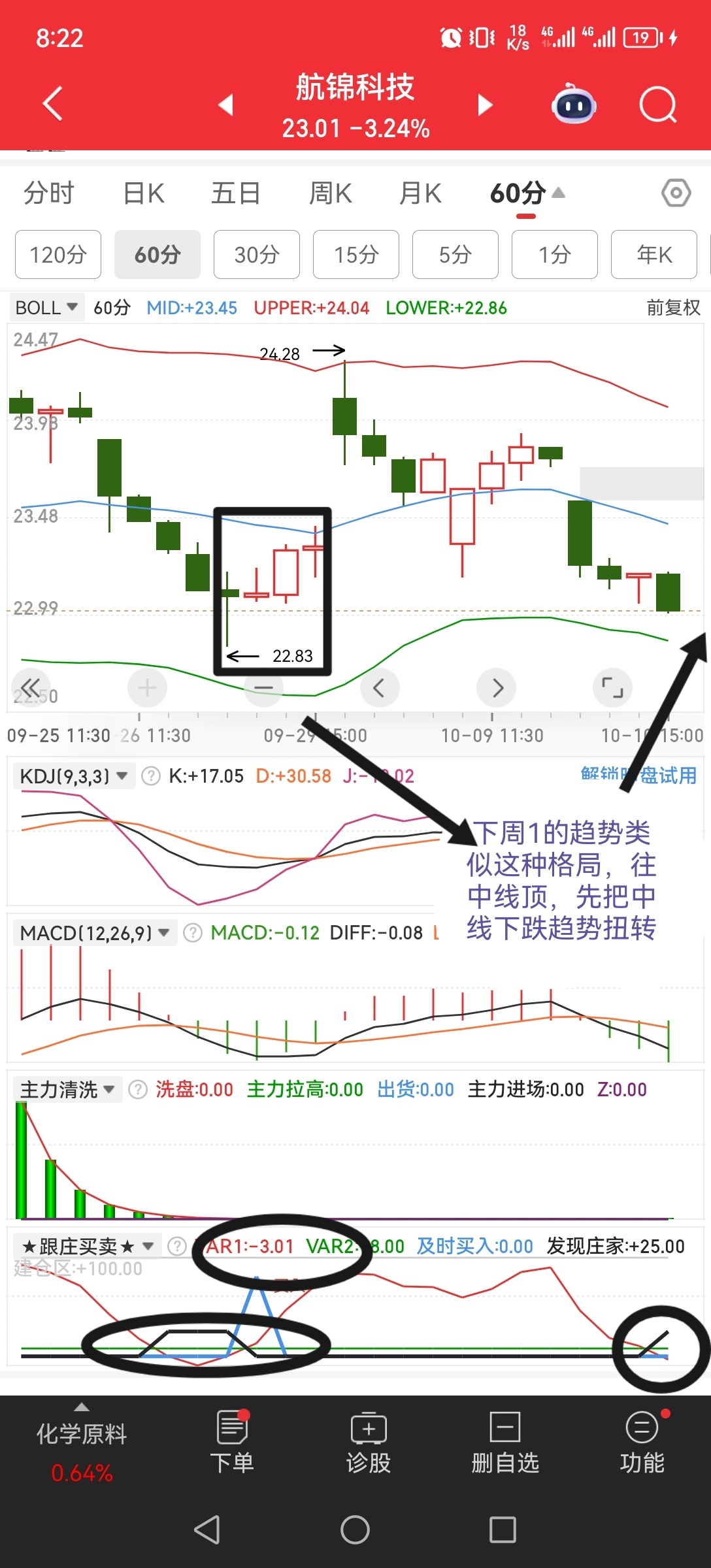 从图片趋势红线看22.9附近为分时底部,周1有跌到的可以小仓位那个