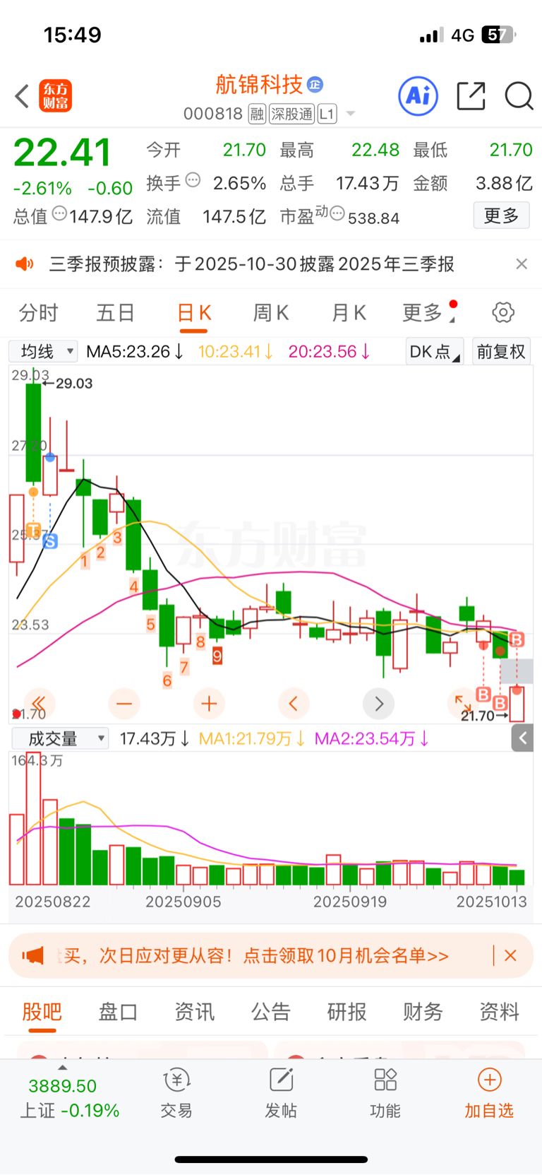 $航锦科技(SZ000818)$ 子弹打完了,22.8的本,听天由命了