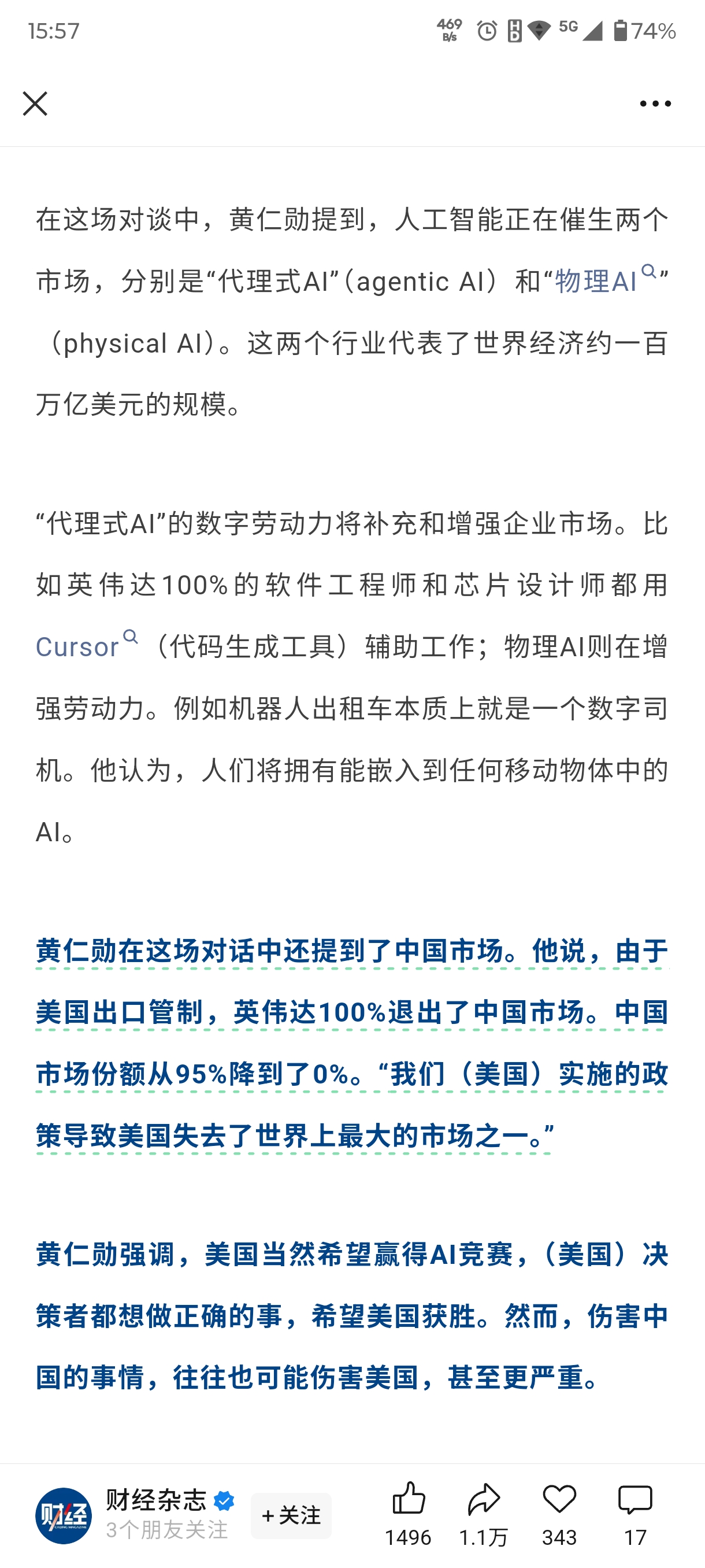 $航锦科技(SZ000818)$ 英伟达称因出口管制,中国市场份额从95%降至0%,黄仁勋真敢说啊。航锦不过是个算力二道贩子,预期上是遭了殃了。
