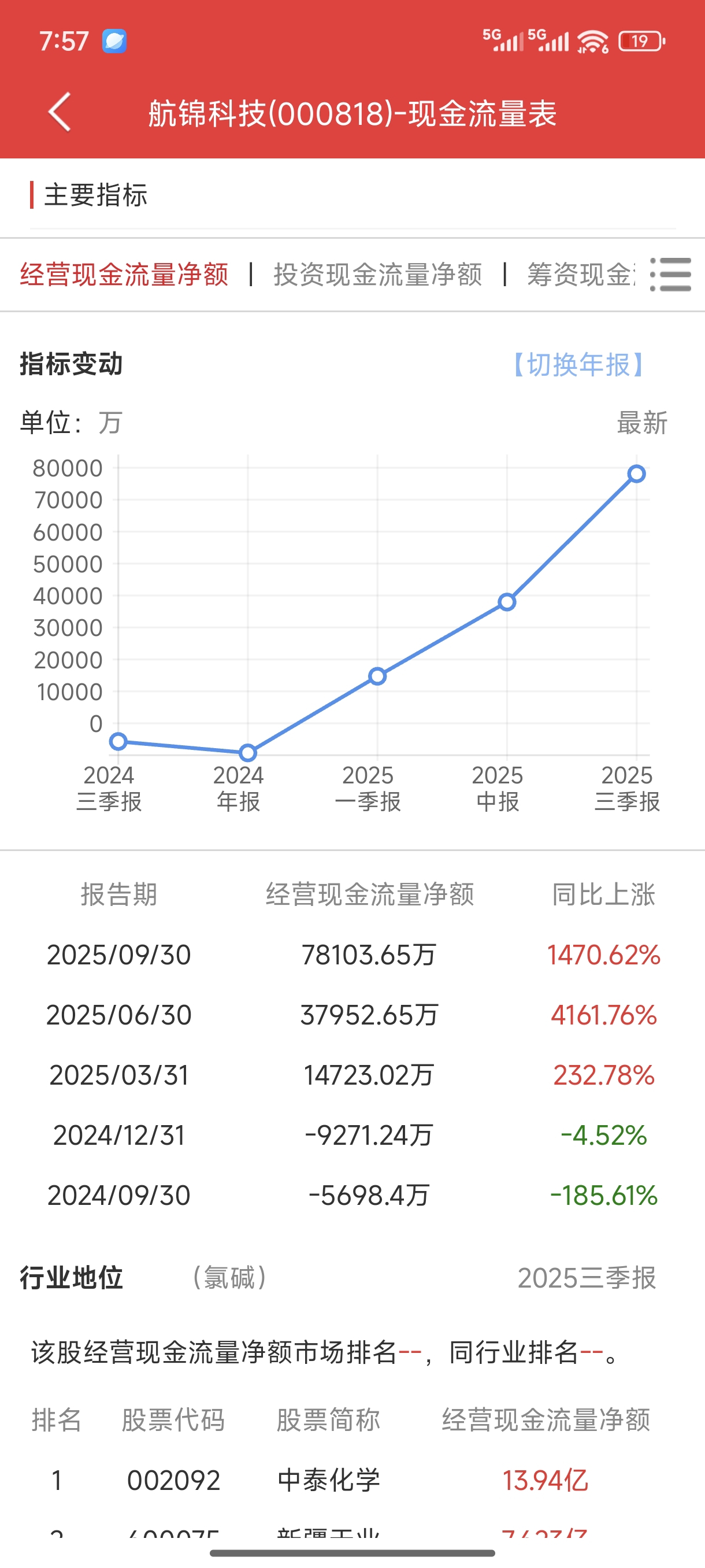 $航锦科技(SZ000818)$ 现金流还是不错的。