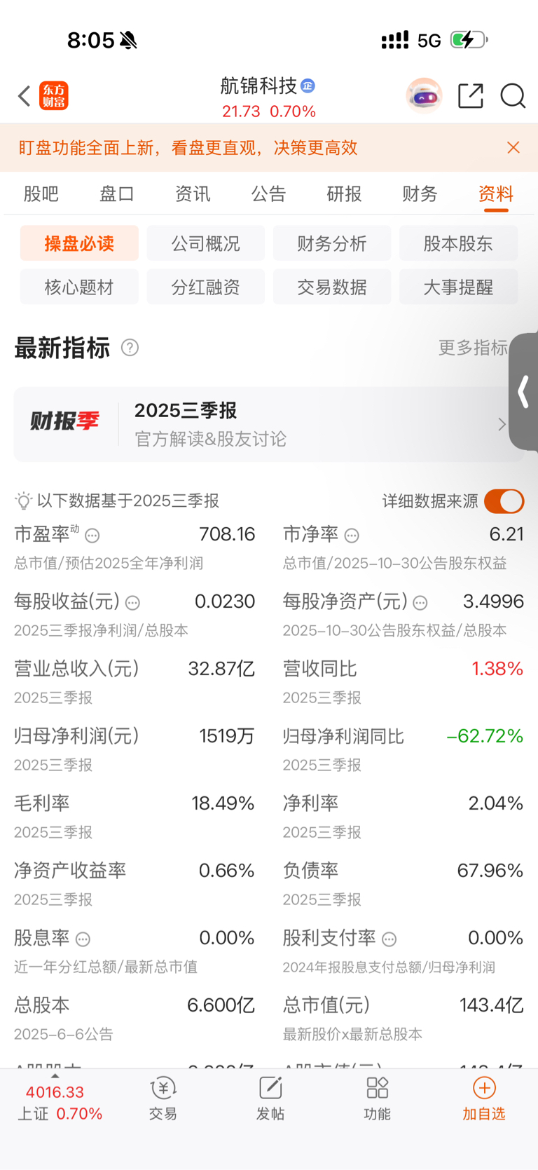 $航锦科技(SZ000818)$ 这市盈率怎么这么恐怖啊